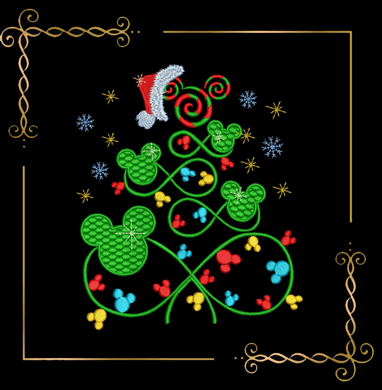 Weihnachtsmaus Weihnachtsbaum und Schloss 2 Größen Stickmuster zum direkten Download