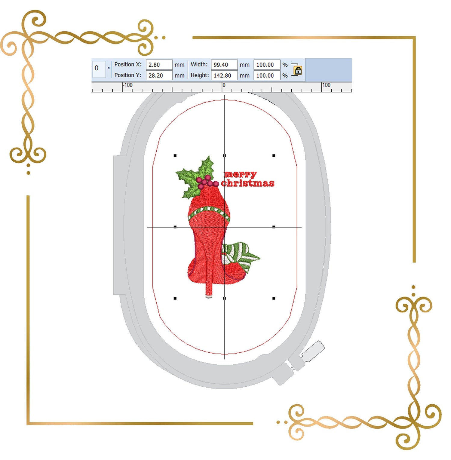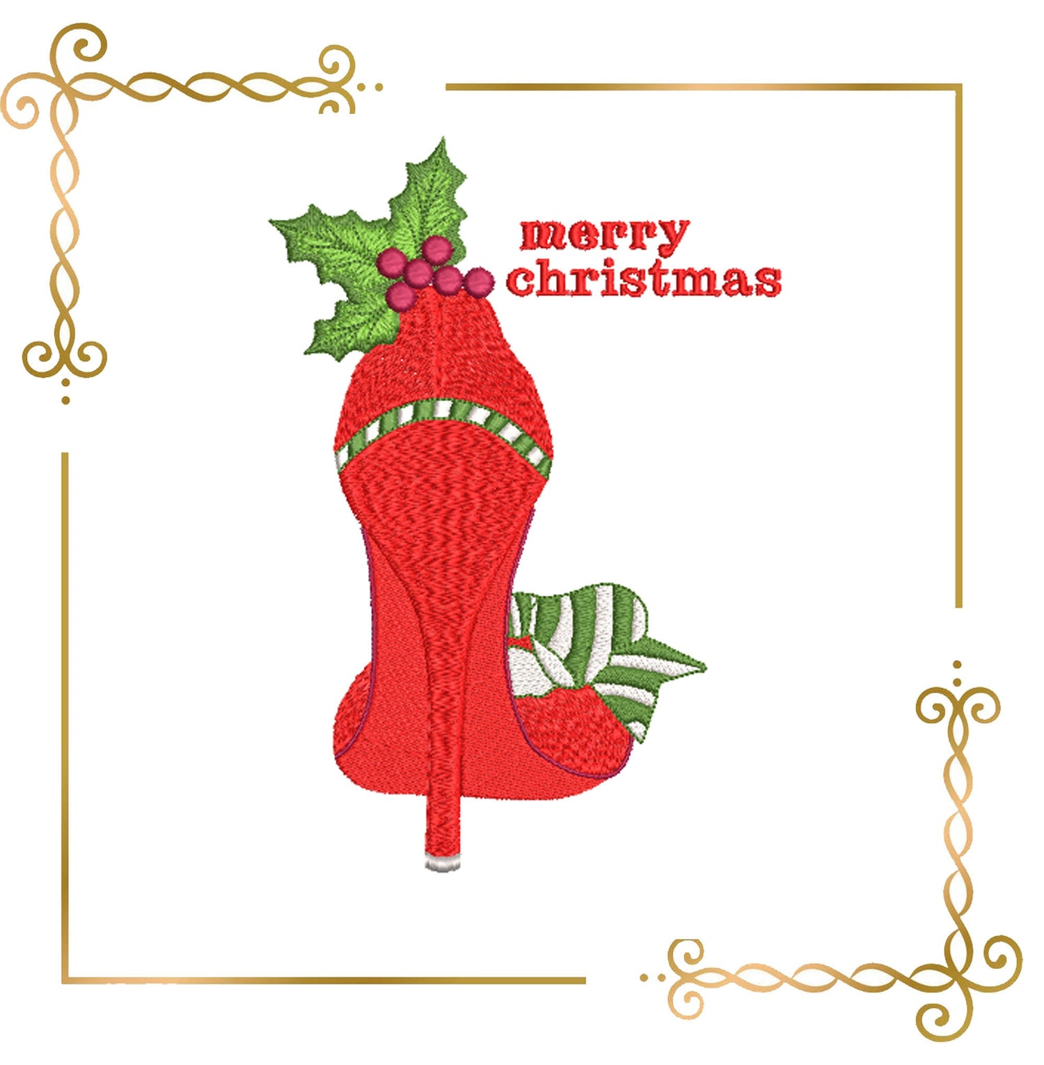 Weihnachtsschuhe mit Schleife 2 Größen Stickmuster zum direkten Download