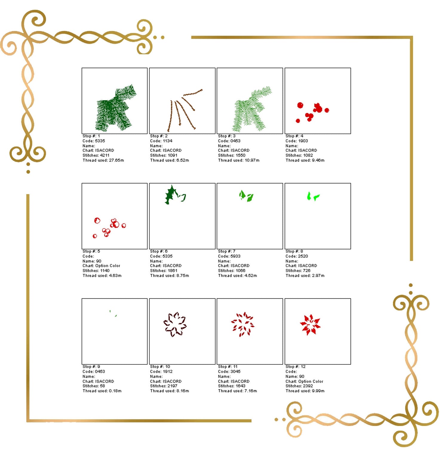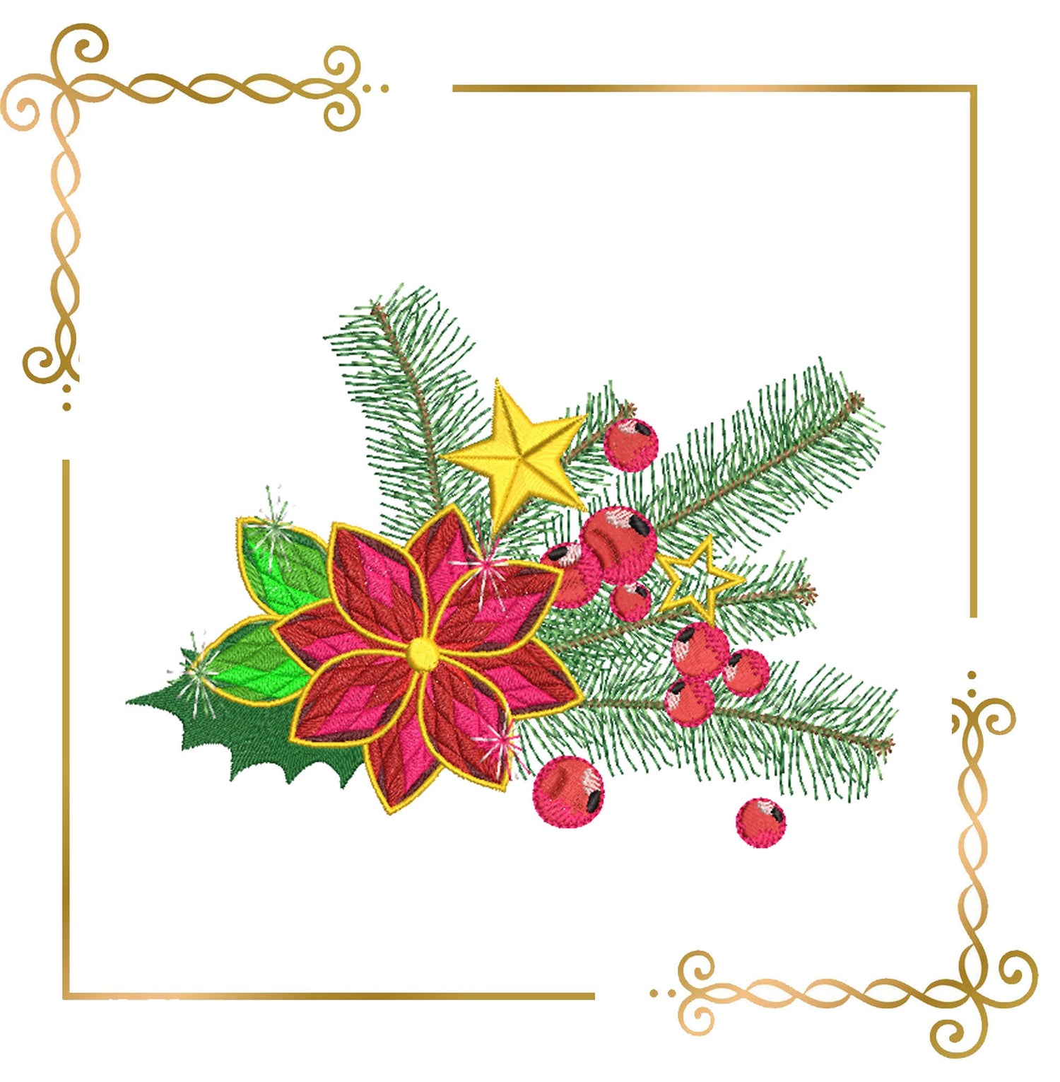 Weihnachten Winter Raute Mistel und Tannenzweig 2 Größen Stickmuster zum direkten Download