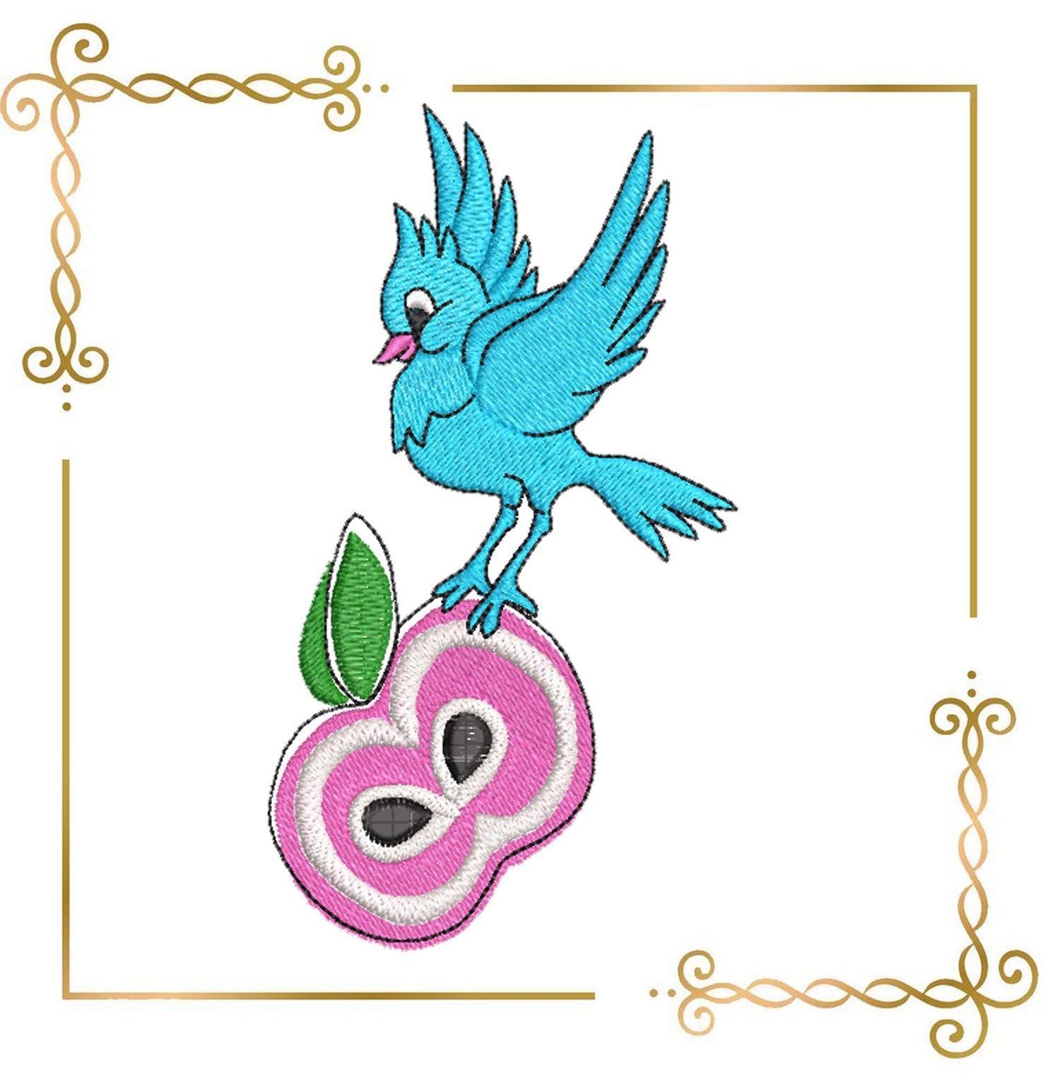 Stickmuster für T-Shirts Stickmuster Apfel und Vogel