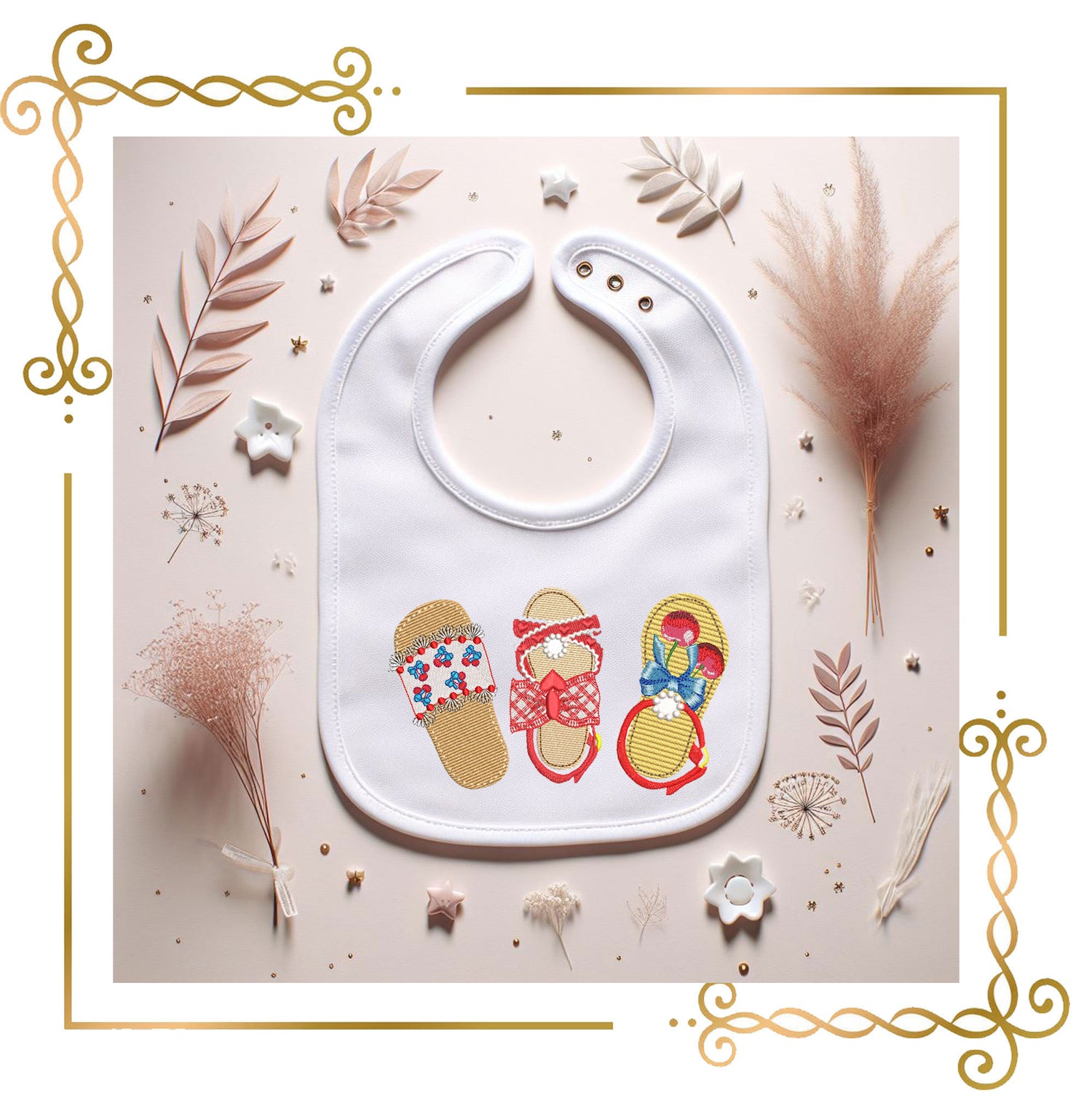 Stickdatei für T-Shirts Sommersandalen – Süße Strand-Flip-Flops für Mädchen – Maschinenstickdatei für Tragetasche, T-Shirt, Baby-Body
