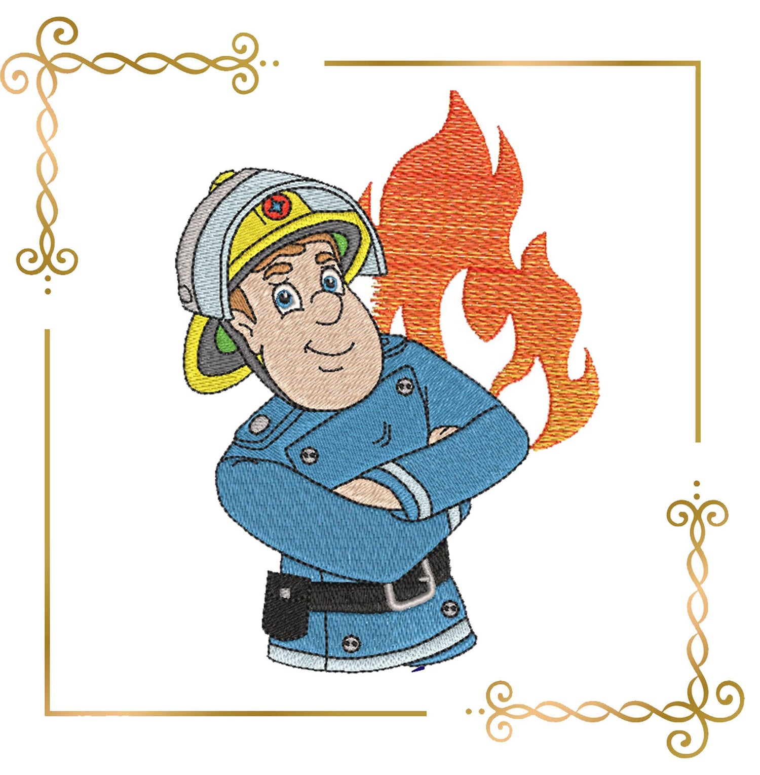 Cartoon-Figuren Feuerwehrmann SAM Digitale Stickdatei - Verspielte Stickmuster für DIY-Bastelarbeiten