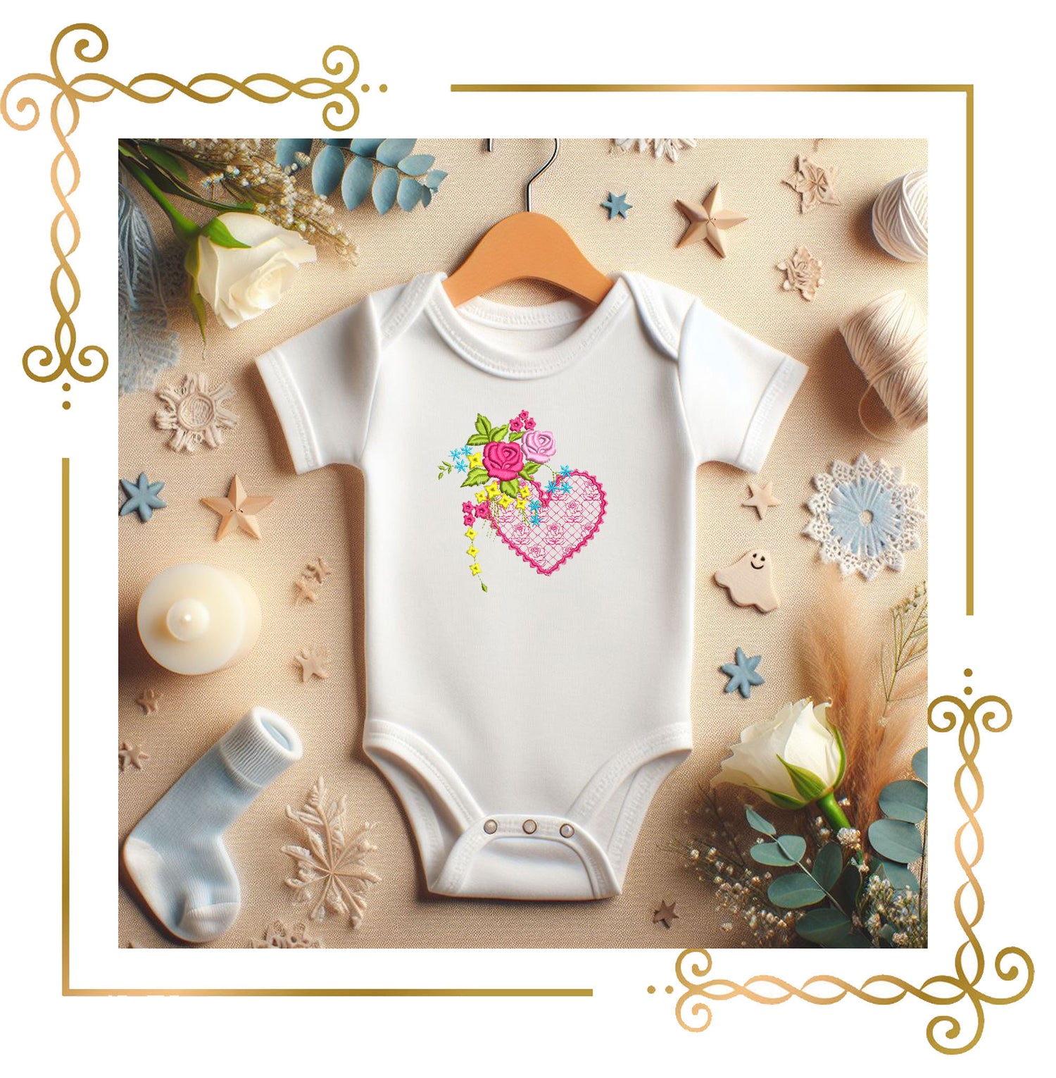 Dieses exquisite florale Herz-Stickmuster fängt die Essenz von Romantik und Eleganz ein. Mit wunderschön detaillierten Rosen, leuchtenden Blumen und aufwendigen Spitzenmustern verleiht dieses Design jedem Projekt einen Hauch von Charme. Ideal für Valentinstag, Hochzeiten oder andere Anlässe, bei denen die Liebe gefeiert wird – dieses Design wird Sie begeistern. Dank seiner filigranen Details und der vielseitigen Größe eignet es sich für eine Vielzahl von Stoffen, darunter Bettwäsche, Kleidung und Accessoires.