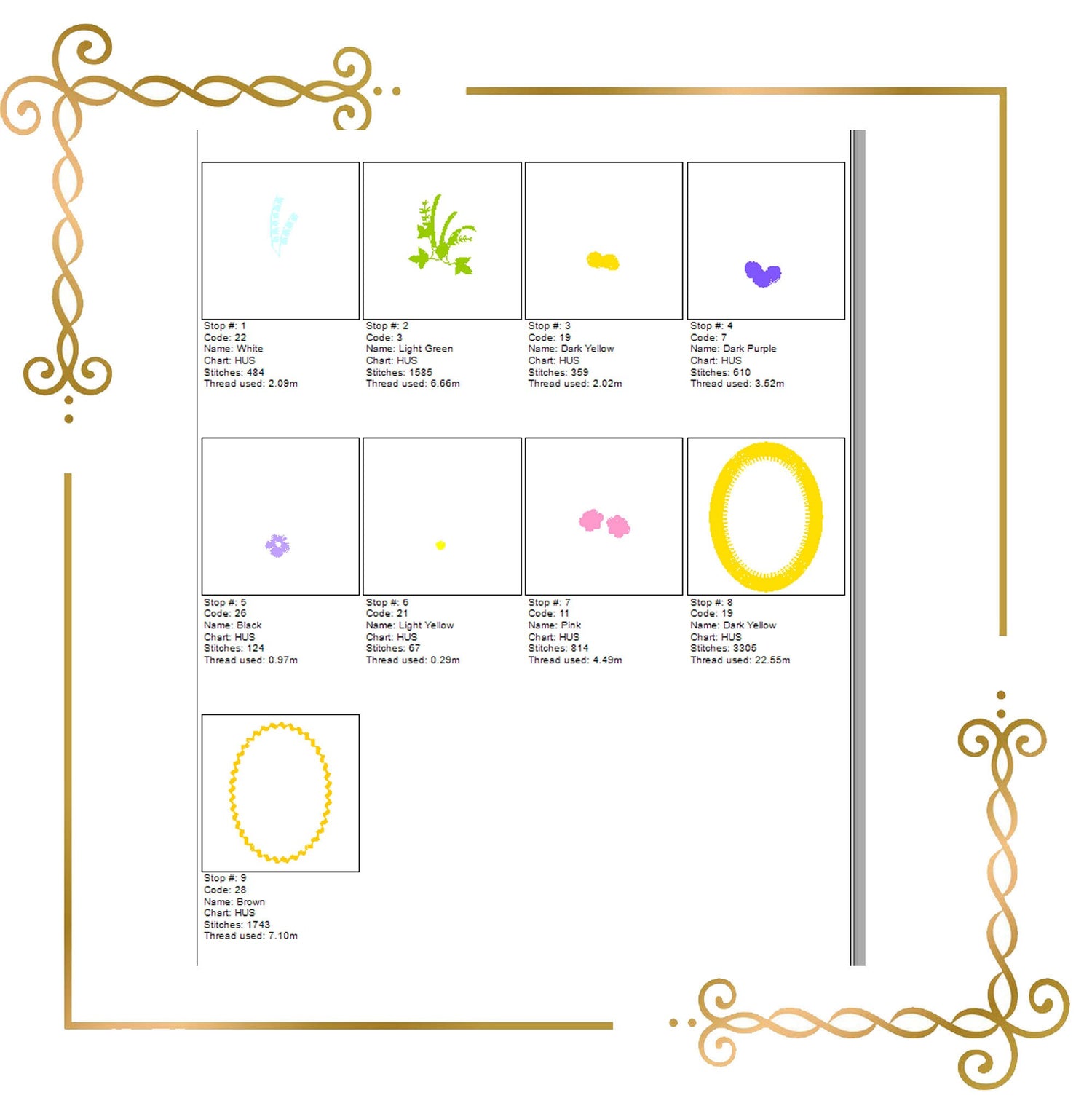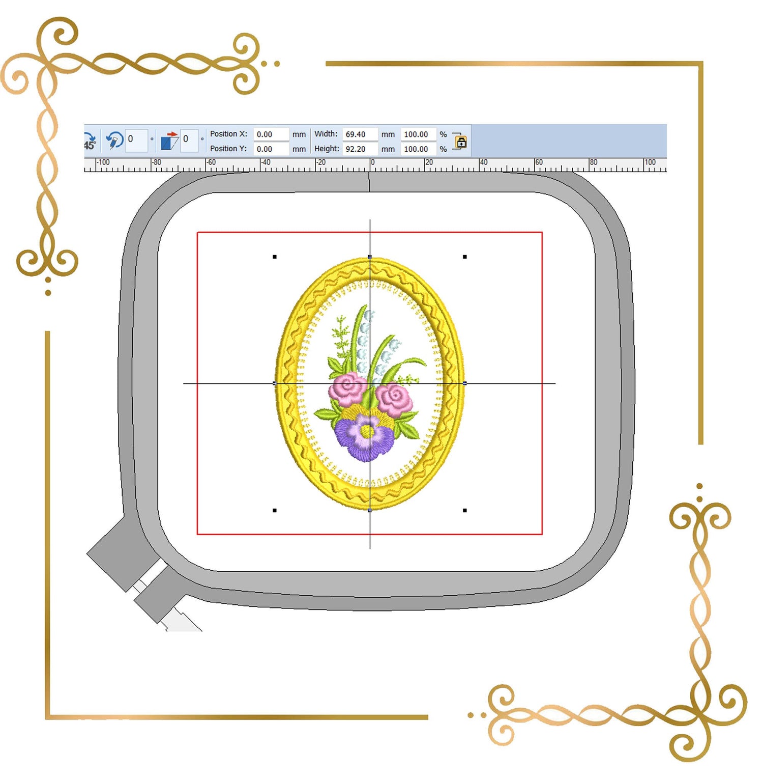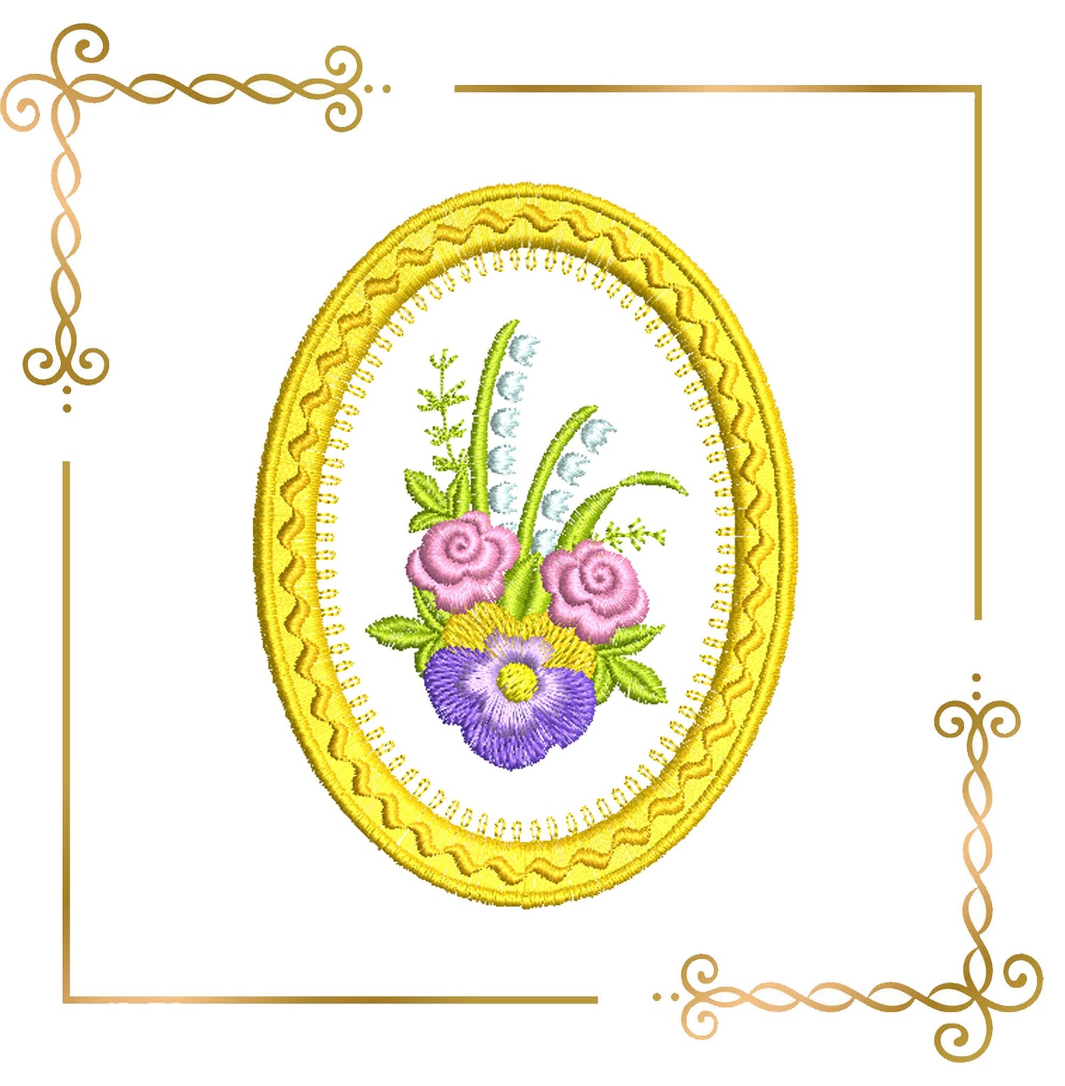 Stickmuster Blumenrahmen Blumenstrauß zum direkten Download.