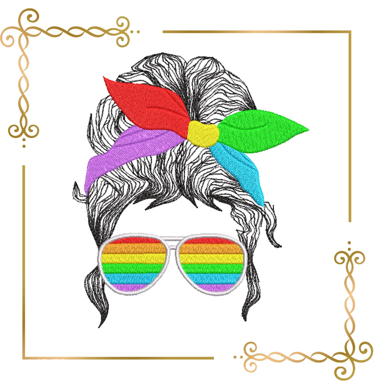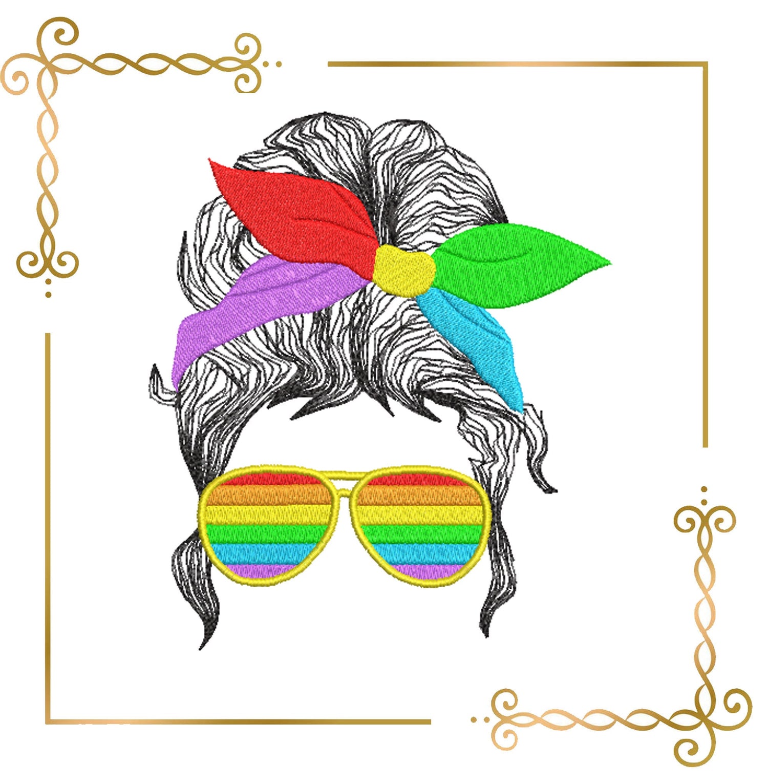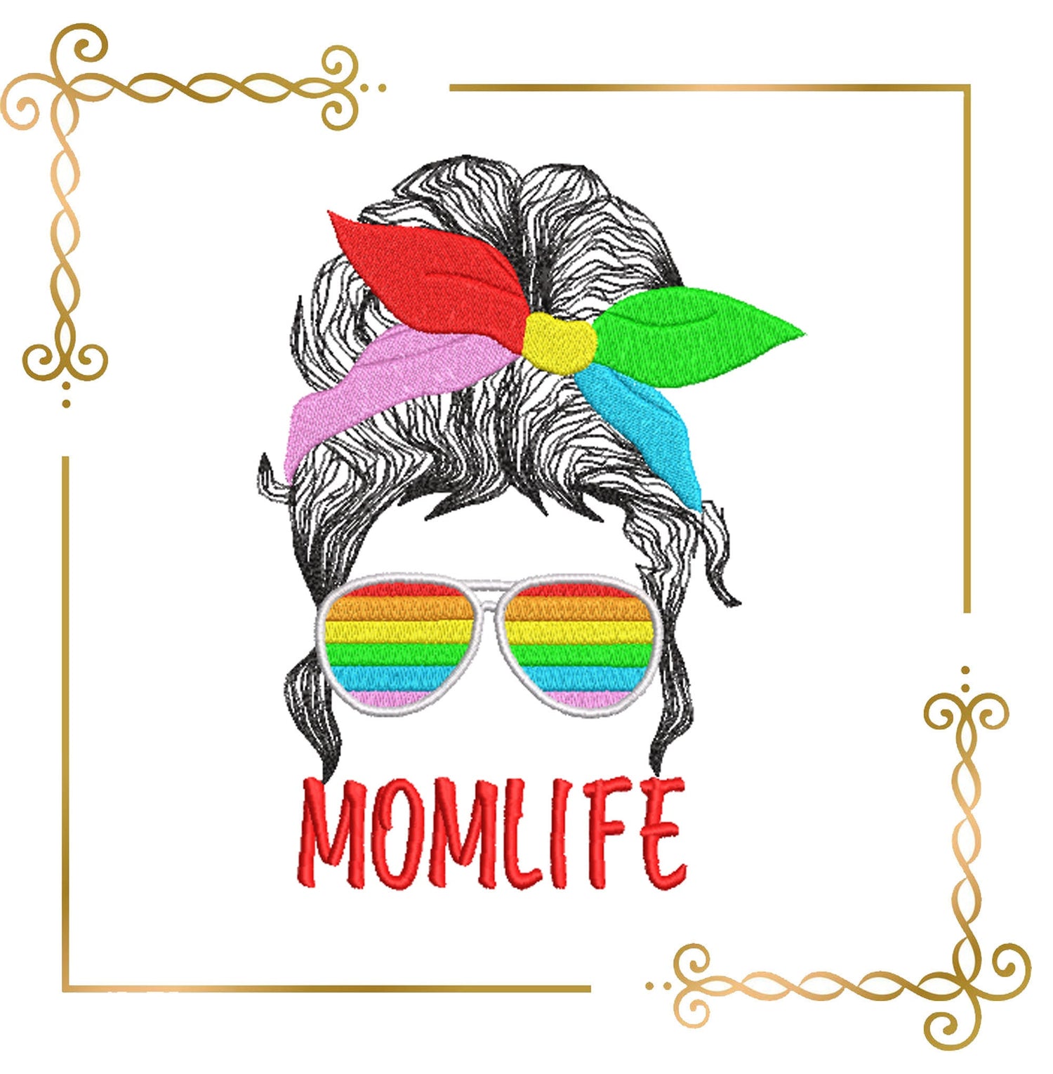 Muttertag, Mom Life Haar, Regenbogen, Brille, 2 Größen, 2 Varianten, Stickmuster zum direkten Download.