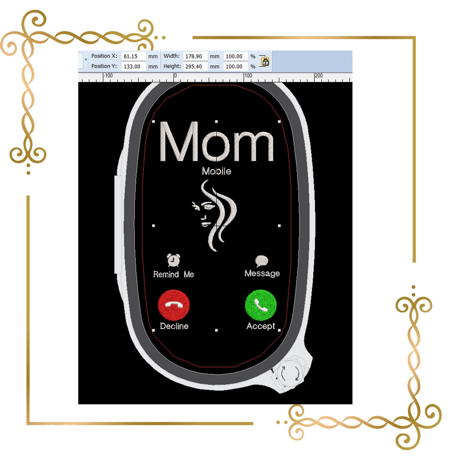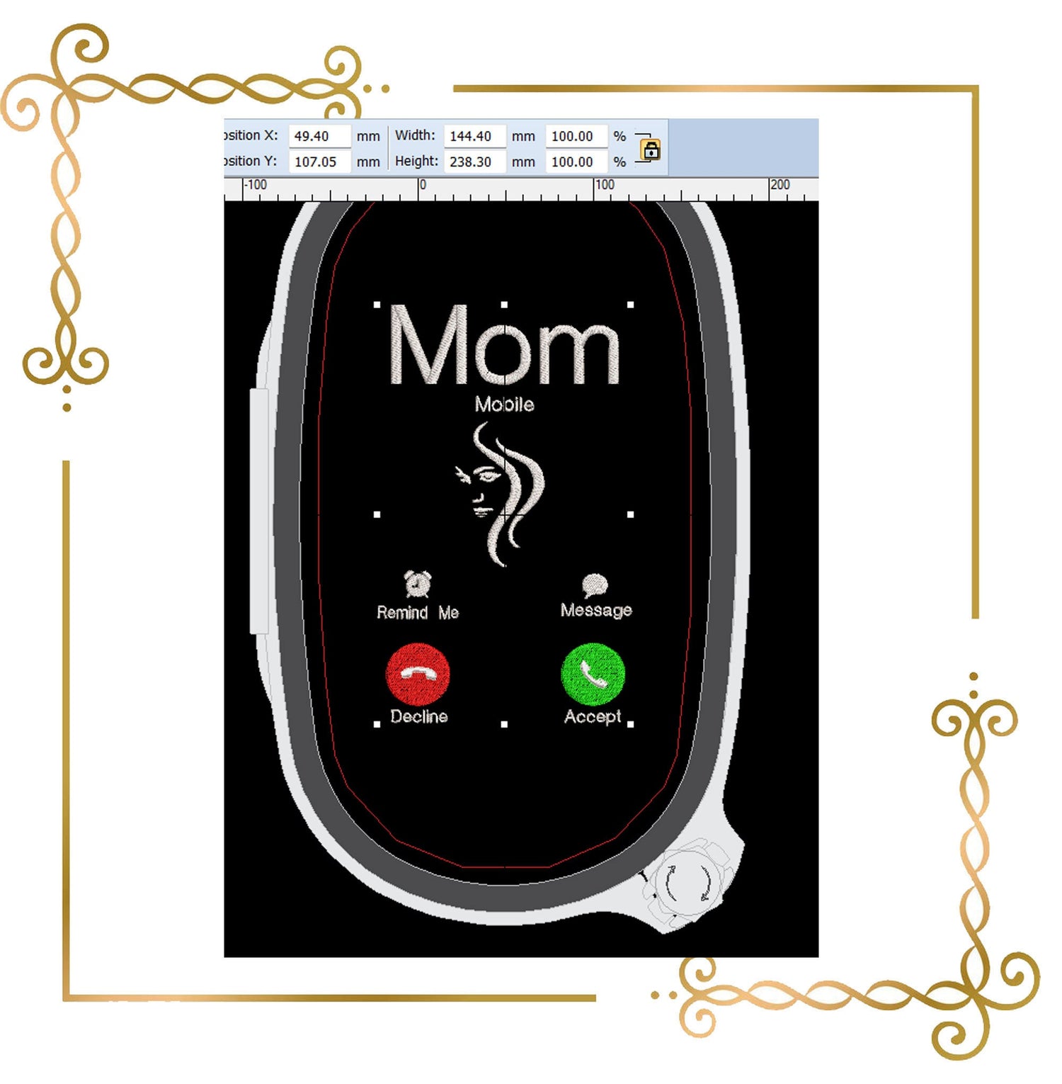 Muttertag, MOM Mobile, Schriftzug, Urlaub, 2 Größen, Stickmuster zum direkten Download.