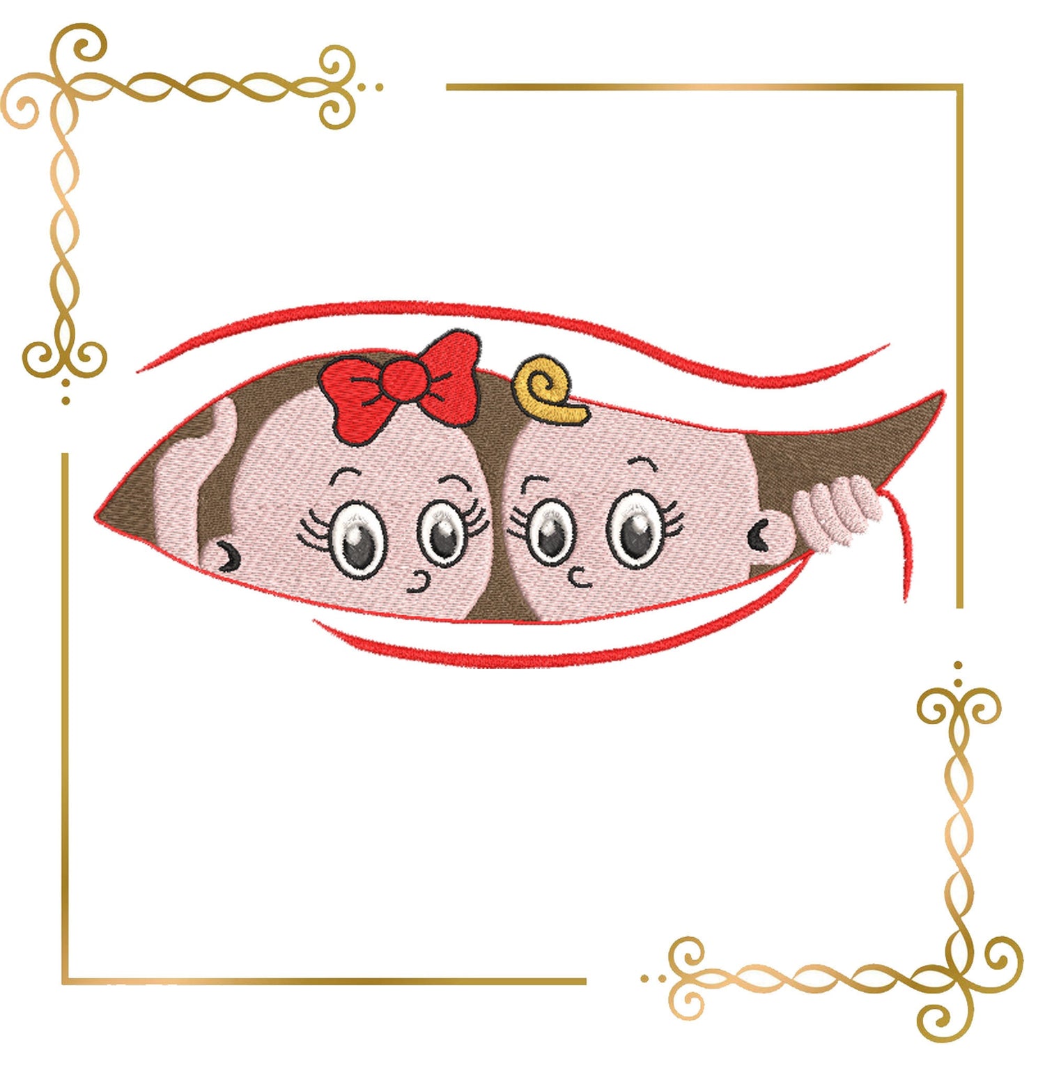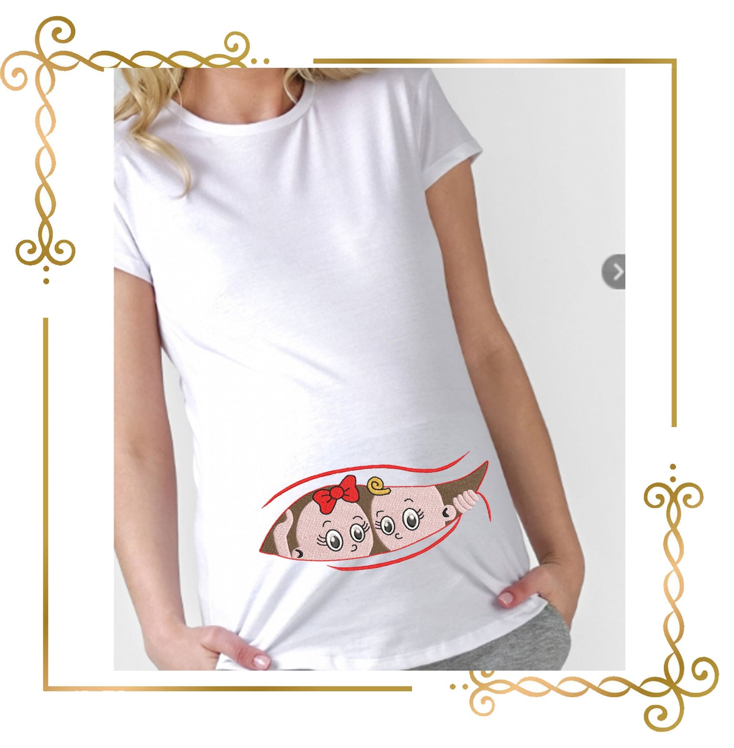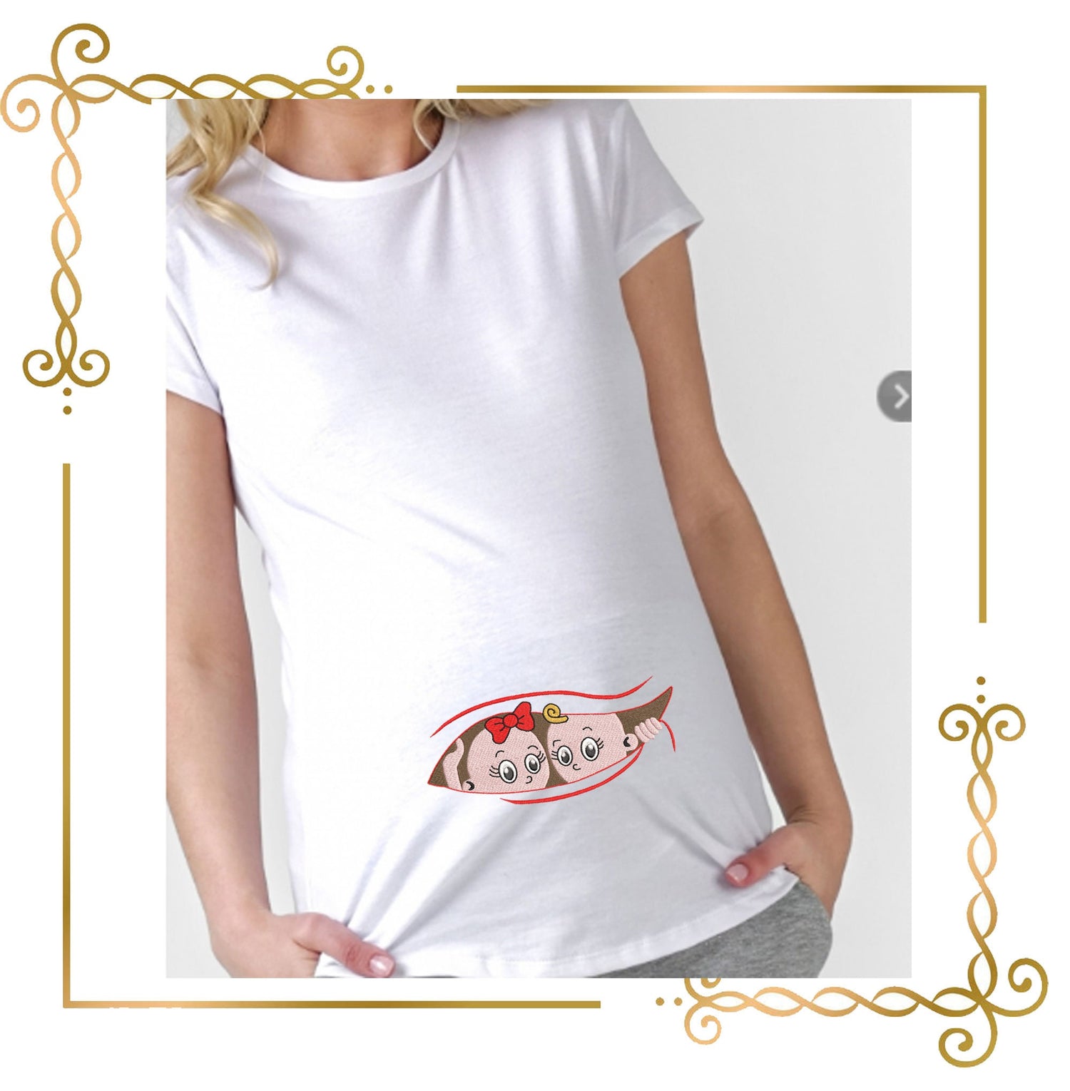 Muttertag an Schwangere Zwillinge Junge und Mädchen 2 Größen Stickmuster zum direkten Download.