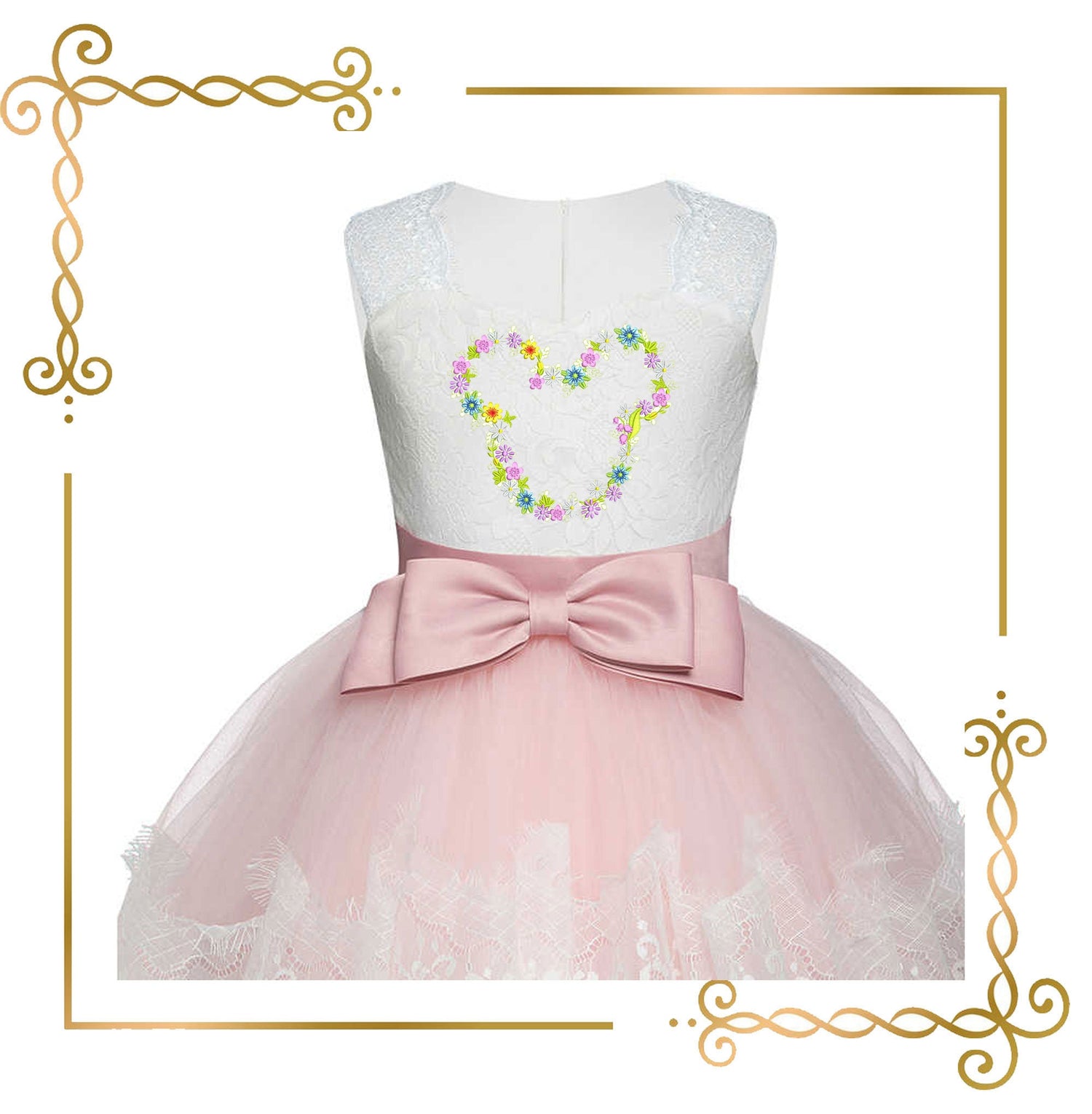 Maus, Kopf, Parodie, Minnie, Blumen, Strauß Stickerei in 2 Größen zum direkten Download.