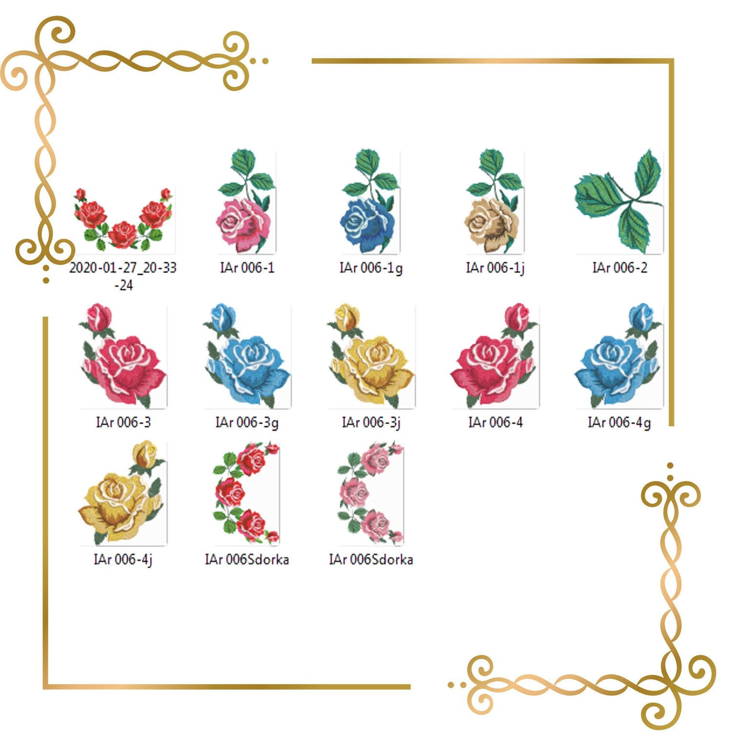 Blumen Rosenstrauß SET Stickmuster zum direkten Download.