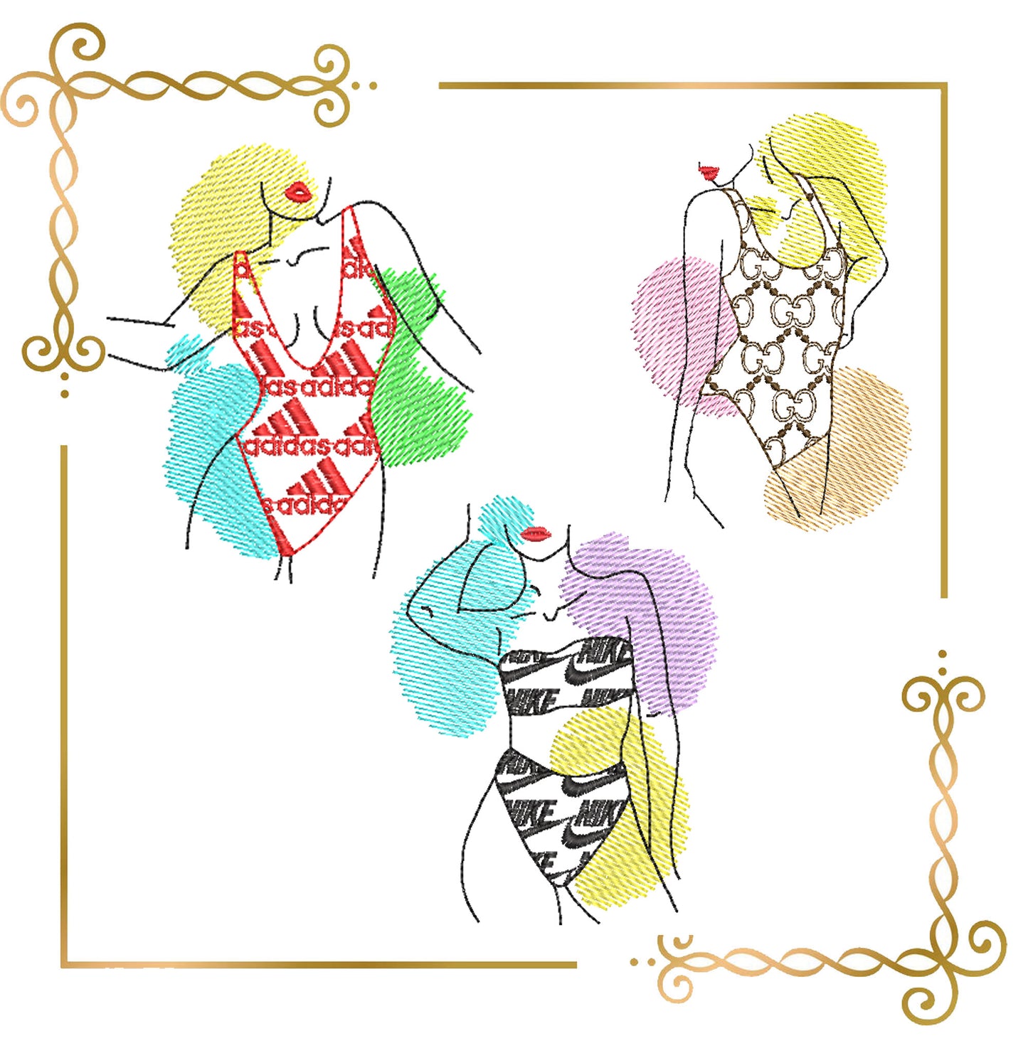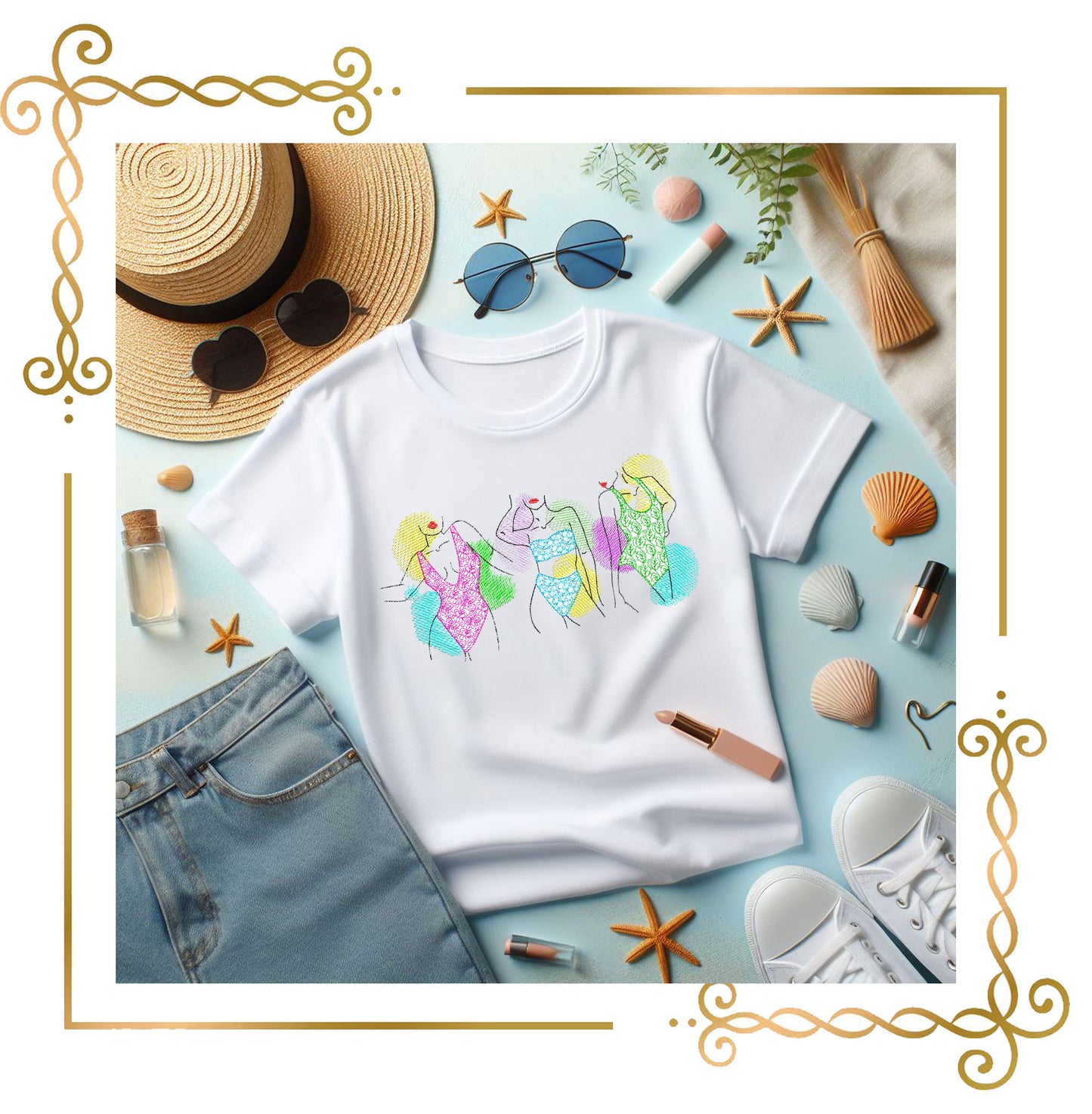 T-Shirt Mädchen in trendigen Badeanzügen Stickmuster digital