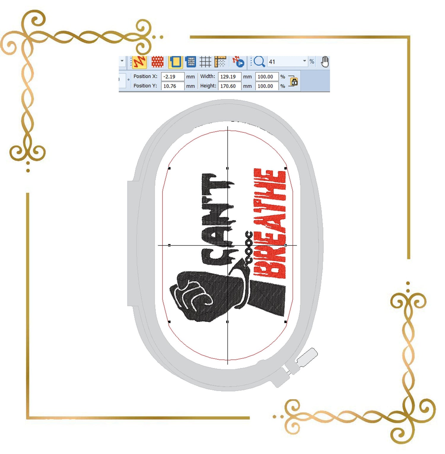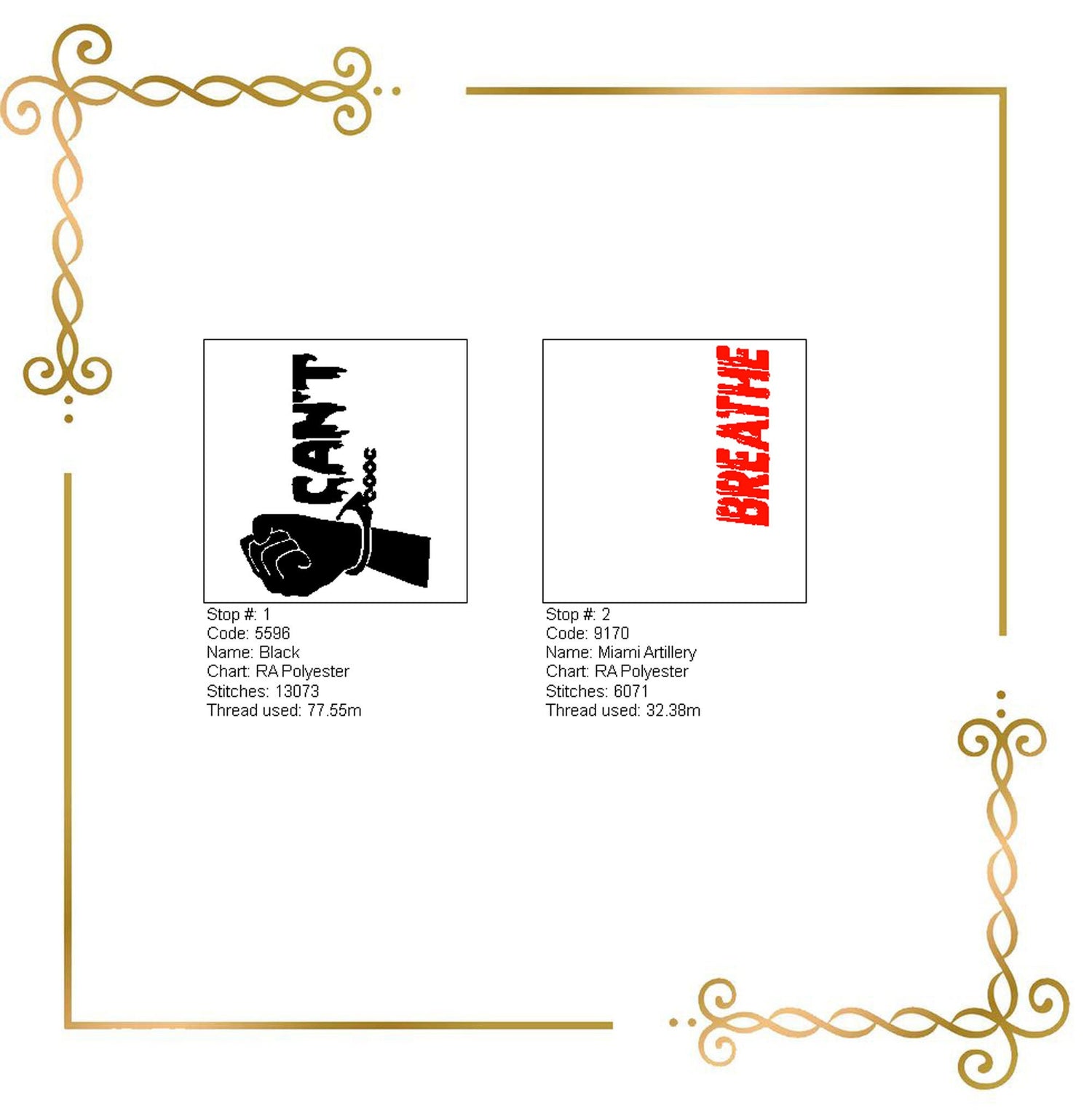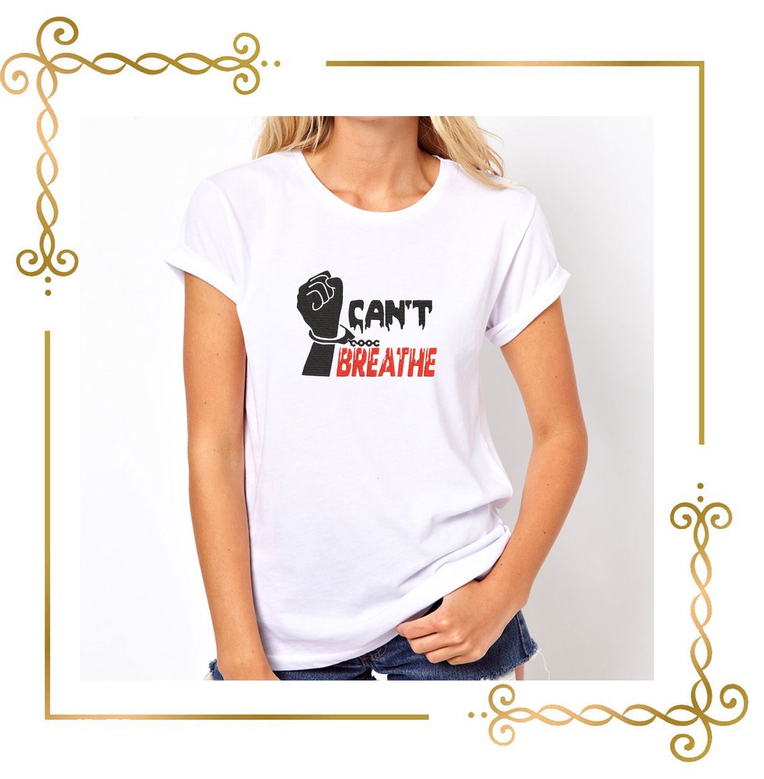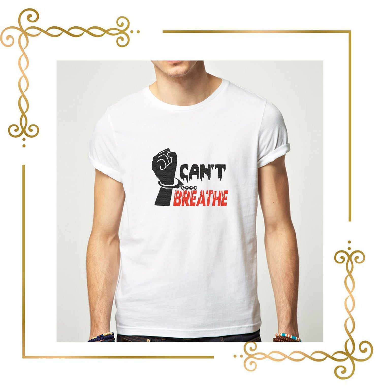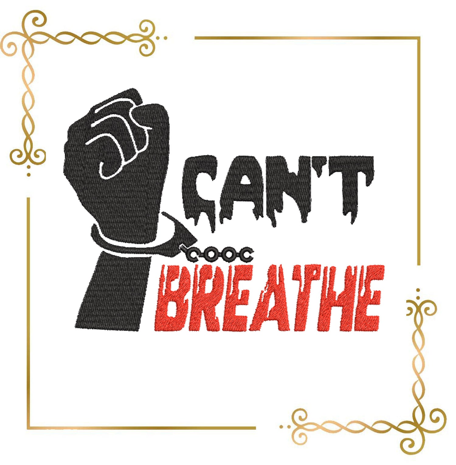 T-Shirt Schriftzug Can't Breathe Stickmuster zum direkten Download.