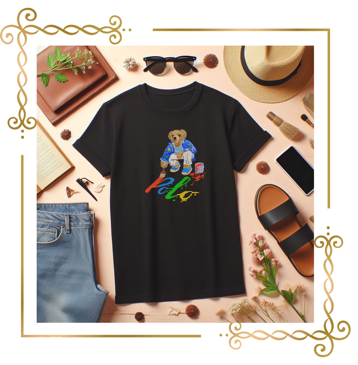 Erwecken Sie Ihre Kreativität mit diesem bezaubernden und detailreichen Stickmuster zum Leben. Ein charmanter Bär malt das Wort „Polo“ mit leuchtenden Farbtupfern. Perfekt zum Verzieren von Tragetaschen, T-Shirts, Jacken oder jedem Bastelprojekt, das einen Hauch von spielerischer Kunstfertigkeit braucht!