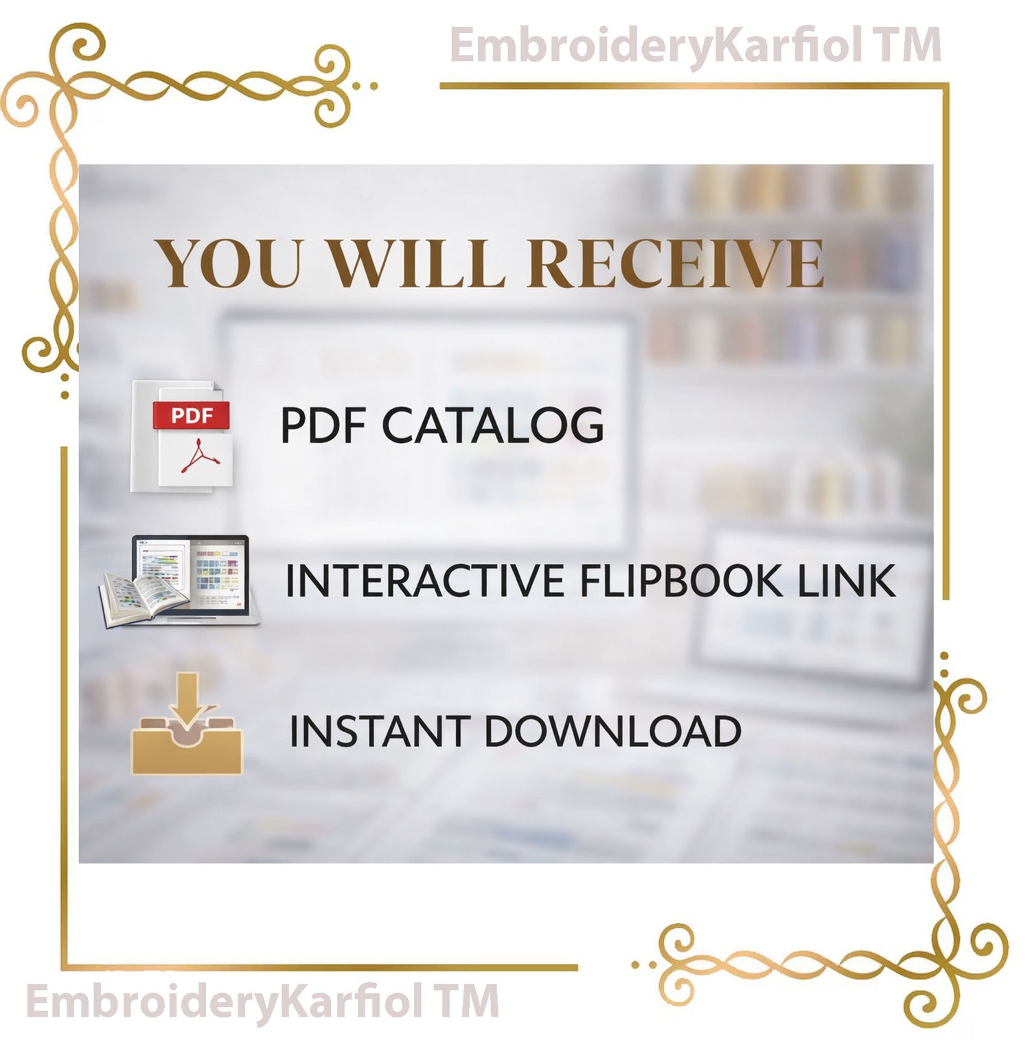 Professional machine embroidery thread catalog in PDF format with additional access to an interactive flipbook version.