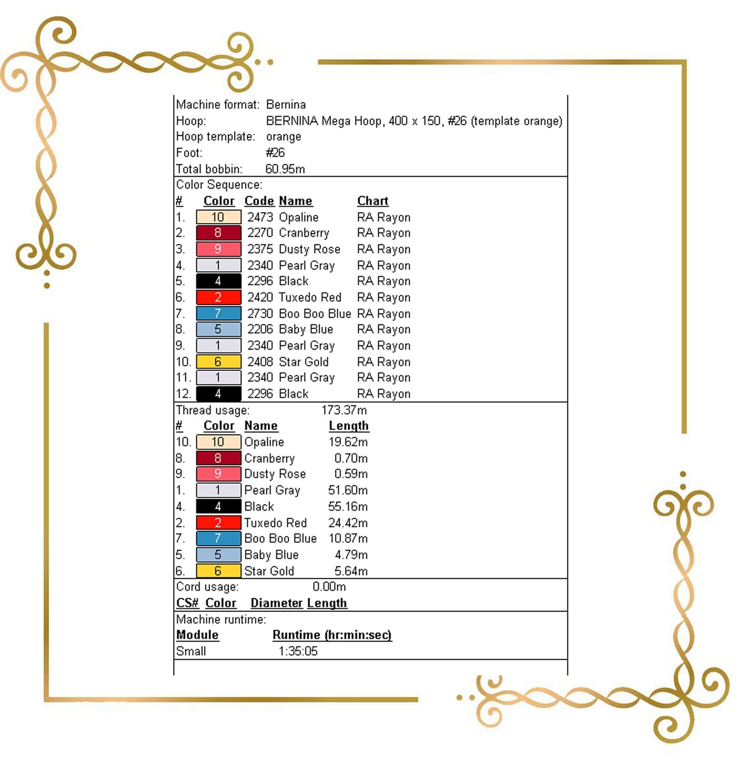 Test stitch the design or portions of it, before stitching it onto your final item, as results may vary depending on fabric and stabilizer combination.