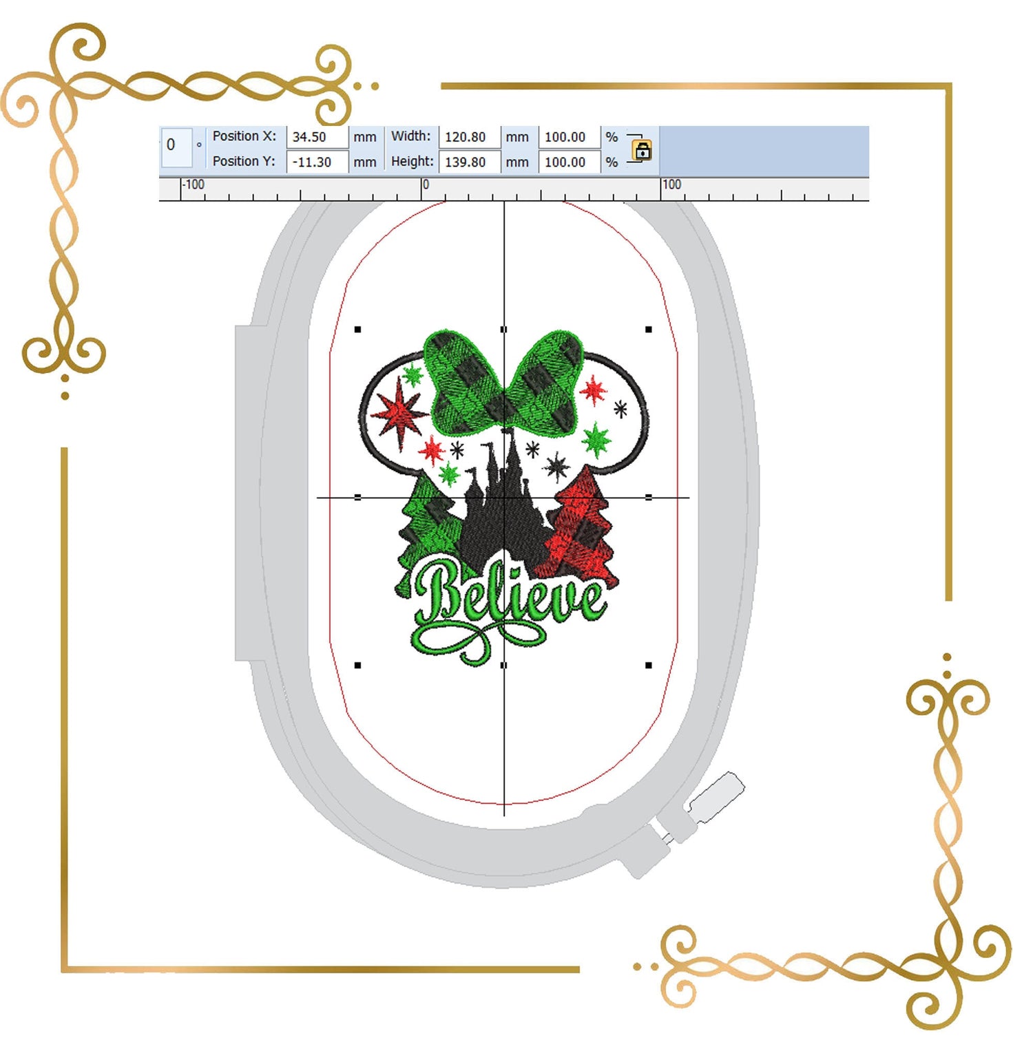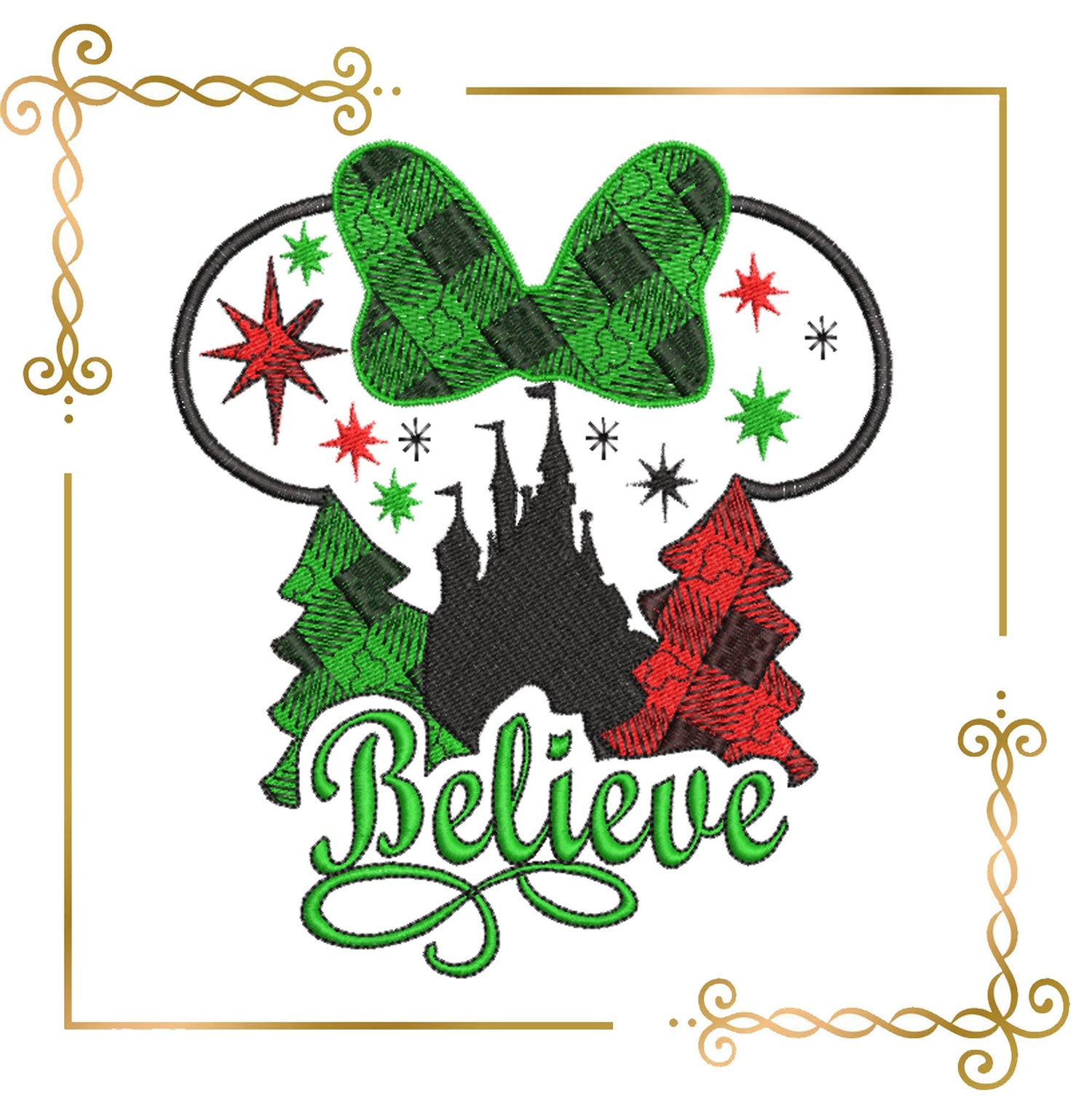 Mouse Christmas Believe Christmas Tree and Castle embroidery design to the direct download