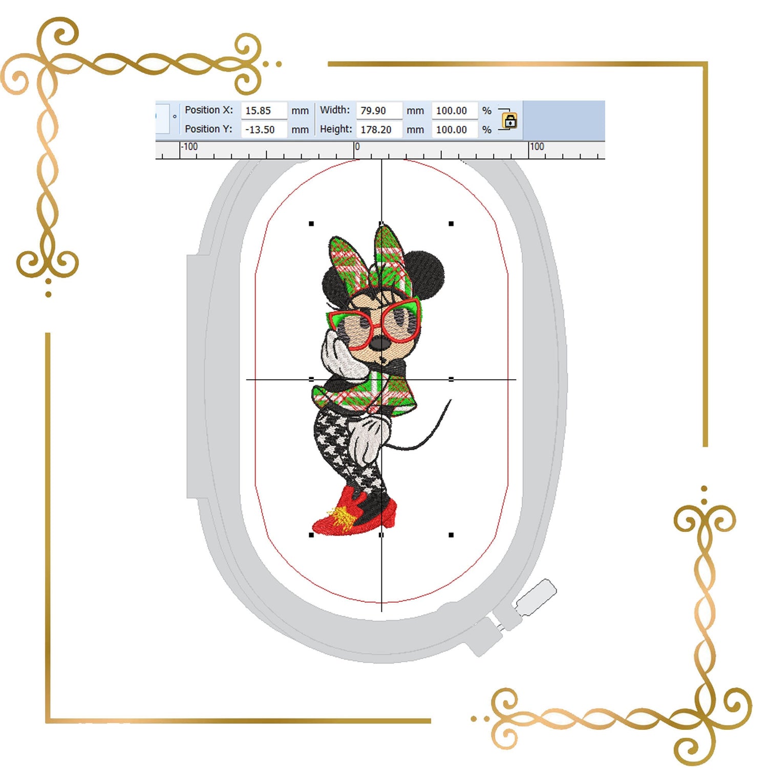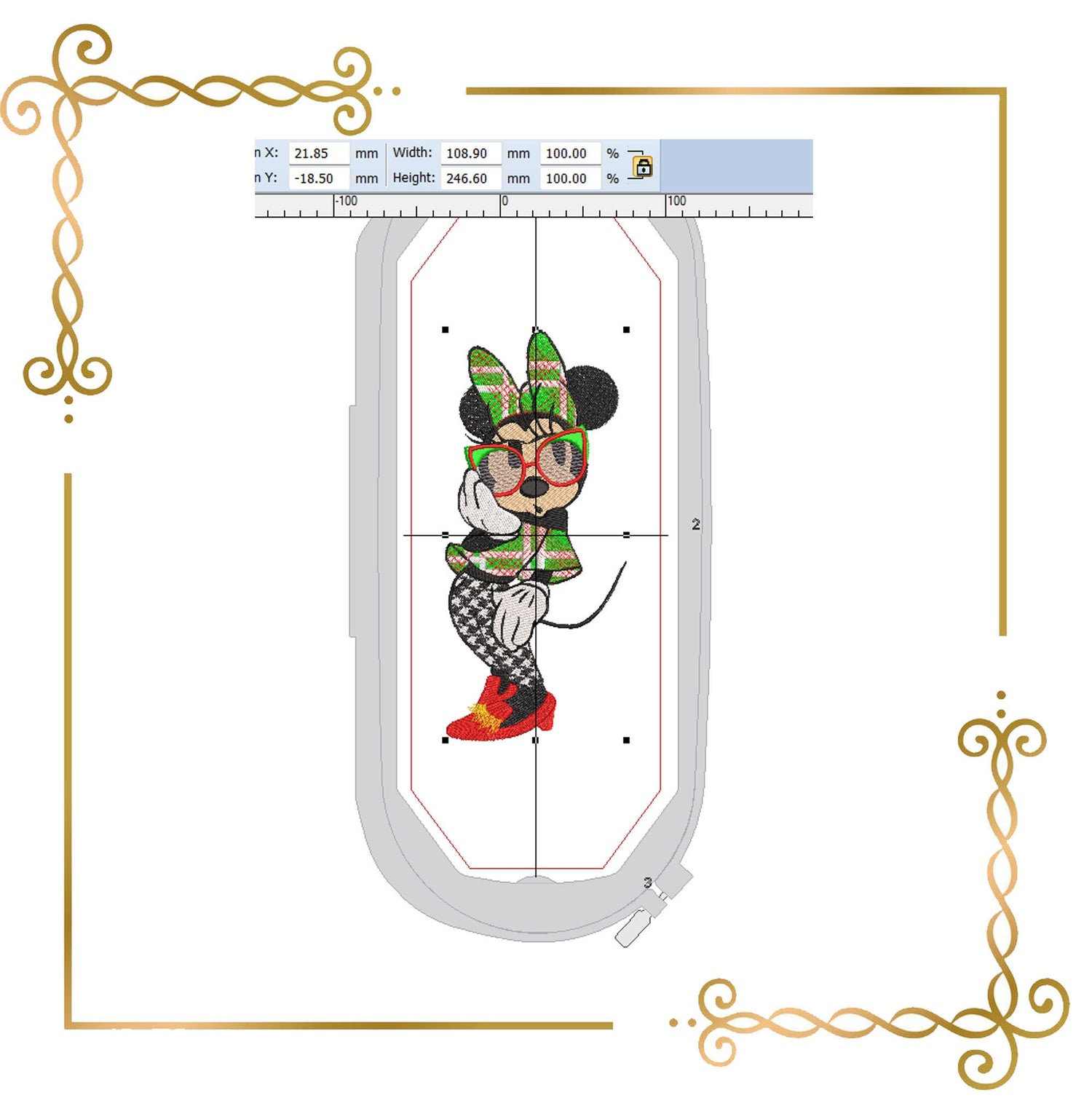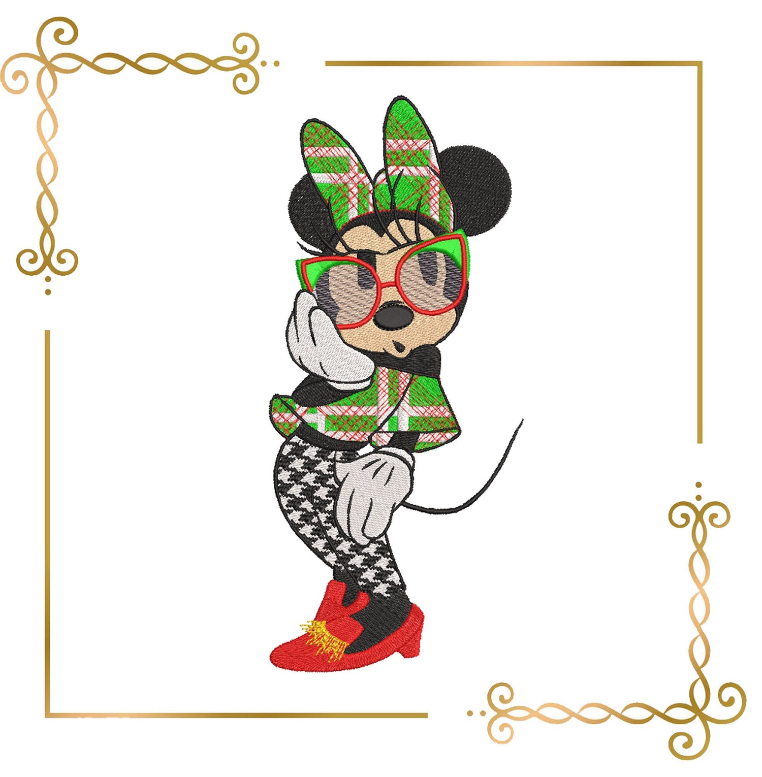 Mouse, Fashionista, Fantasy, Minnie in glasses and fancy clothes, parody embroidery design to the direct download.