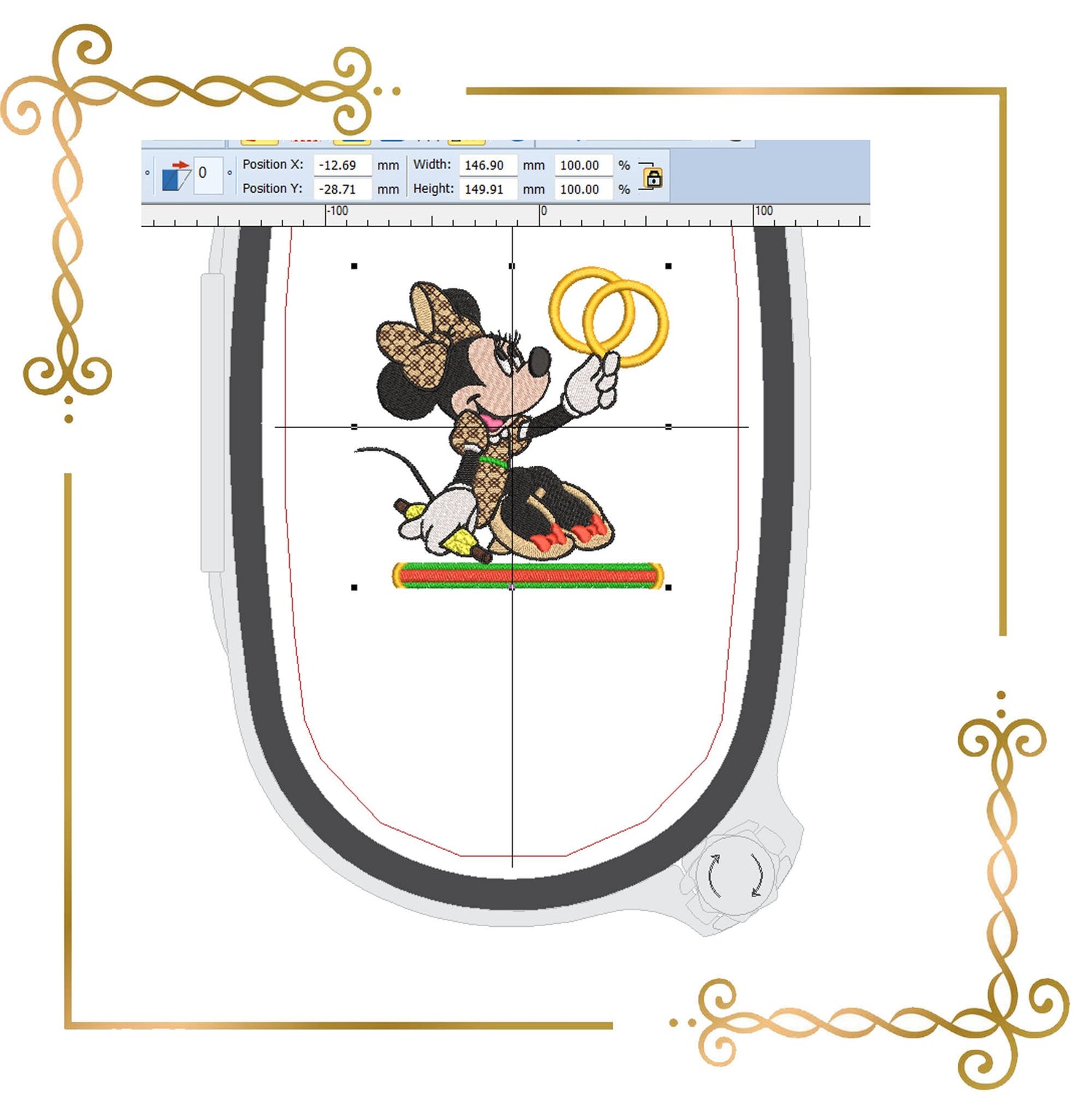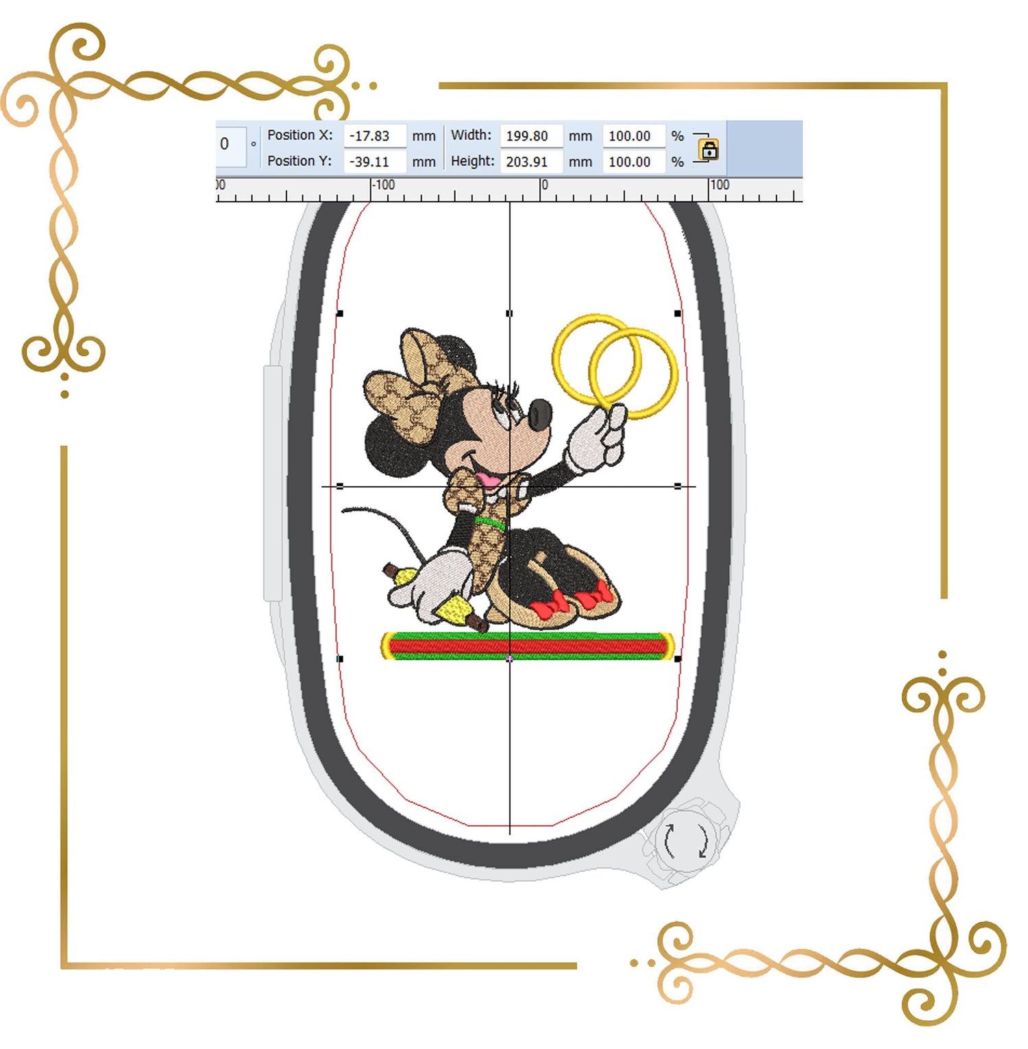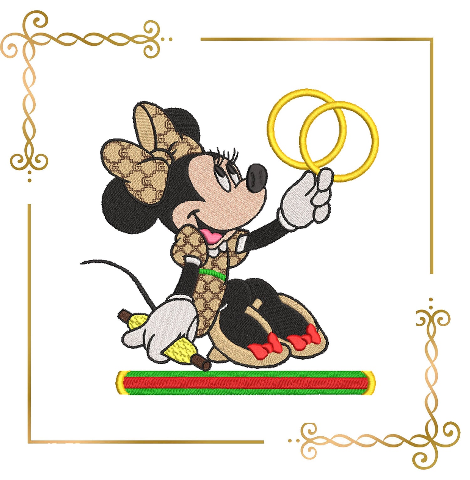 Mouse, Fashionista, Minnie, holds the rings, Fantasy, 2 Sizes, 2 types embroidery design to the direct download.