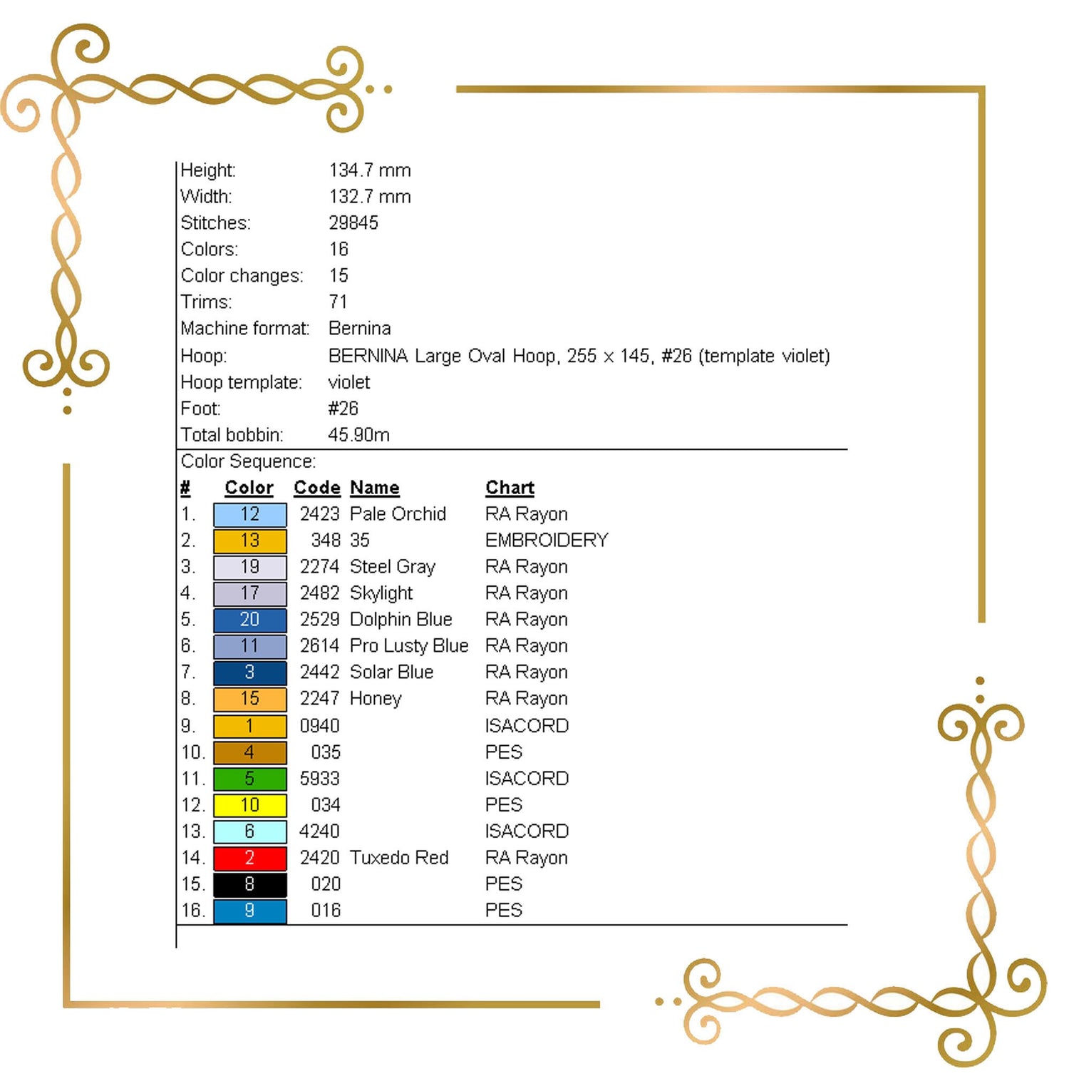 When using the design, use the necessary technology for embroidery. Use appropriate thread and needles (preferably new). Use the appropriate bottom tear-off and appropriate top embroidery fleece. Tension the material well and secure it in the hoop. Only then will you get perfect results.