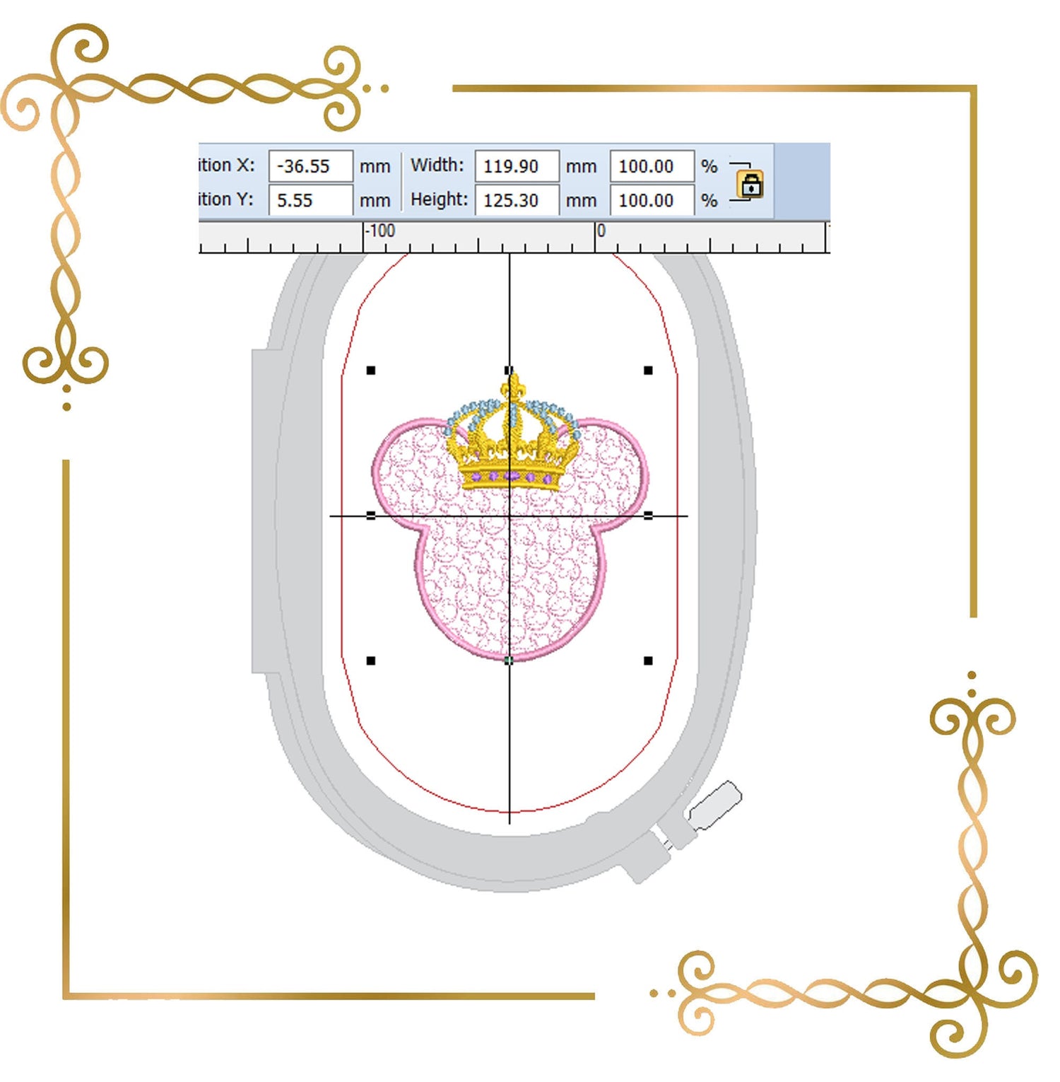 When using the design, use the necessary technology for embroidery. Use appropriate thread and needles (preferably new). Use the appropriate bottom tear-off and appropriate top embroidery fleece. Tension the material well and secure it in the hoop. Only then will you get perfect results.
