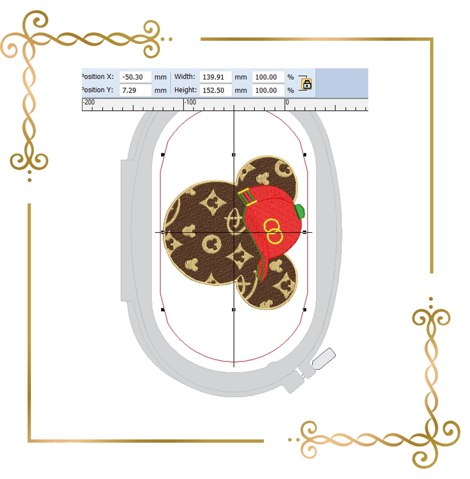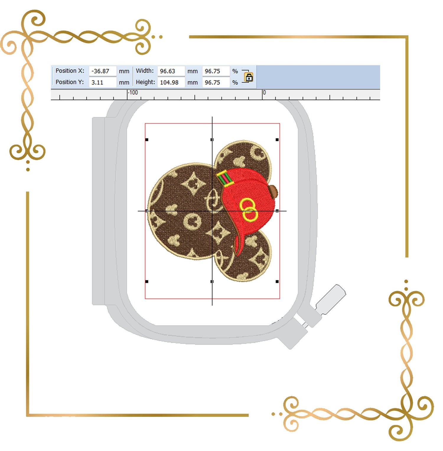 When using the design, use the necessary technology for embroidery. Use appropriate thread and needles (preferably new). Use the appropriate bottom tear-off and appropriate top embroidery fleece. Tension the material well and secure it in the hoop. Only then will you get perfect results.