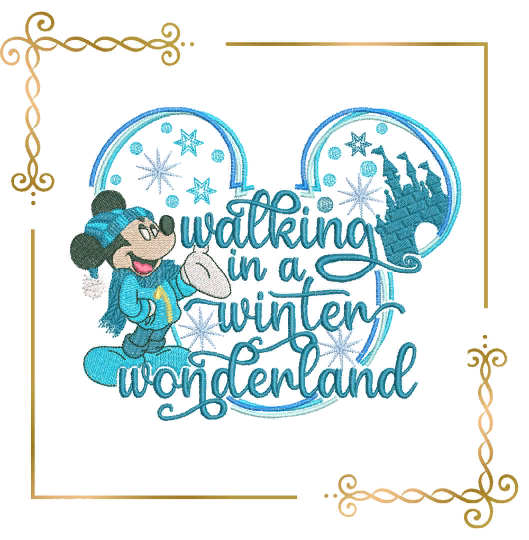 Mickey Mouse, Walking in a winter wonderland, Greetings, embroidery design to the direct download