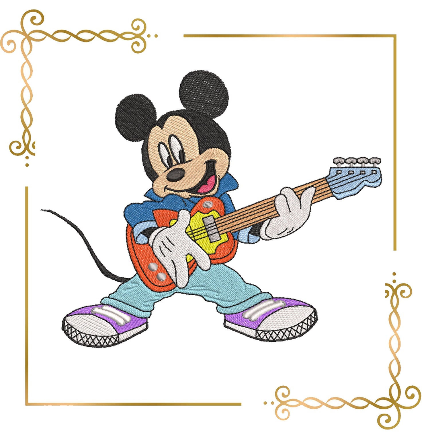 Mouse plays guitar like Elvis Presley Mickey Fantasy parody embroidery design