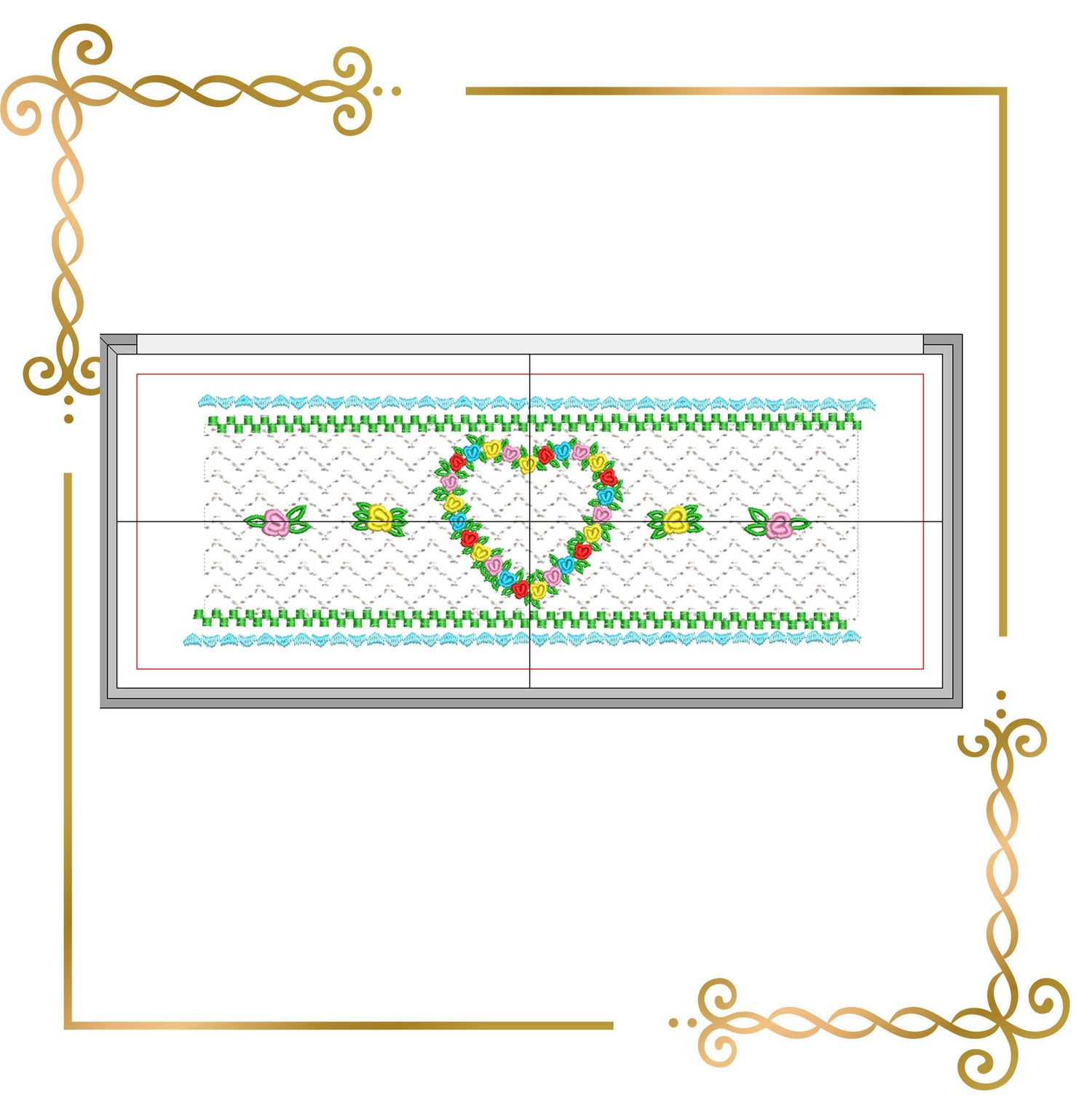 Smocking Plate Design Plate Flower Heart for dress machine embroidery design to the direct download.