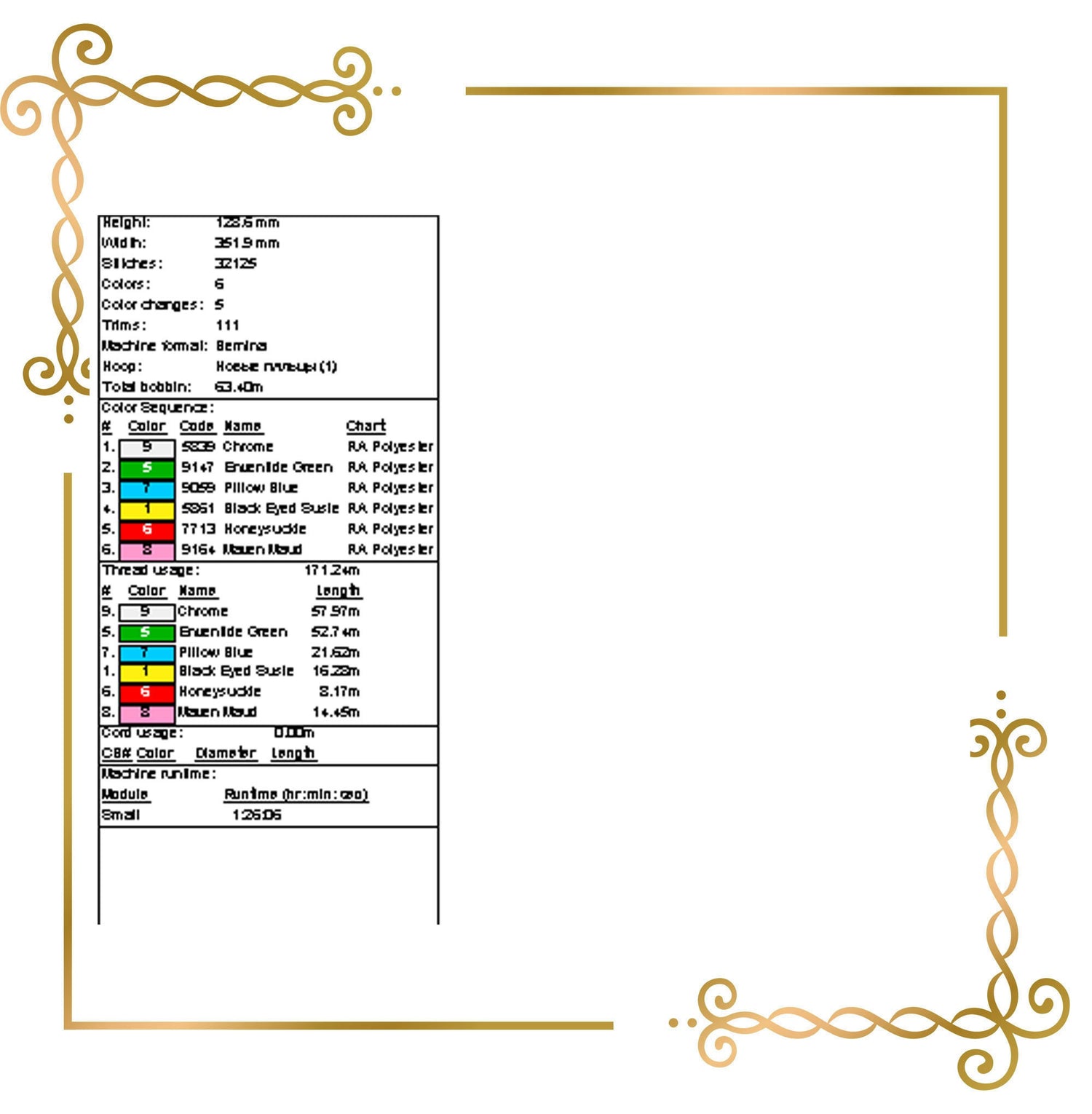 Test stitch the design or portions of it, before stitching it onto your final item, as results may vary depending on fabric and stabilizer combination.