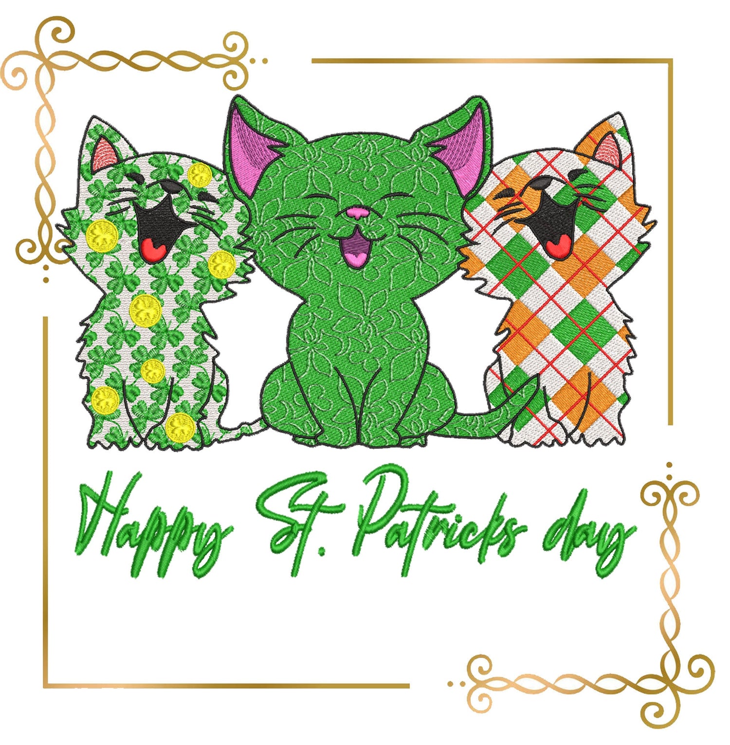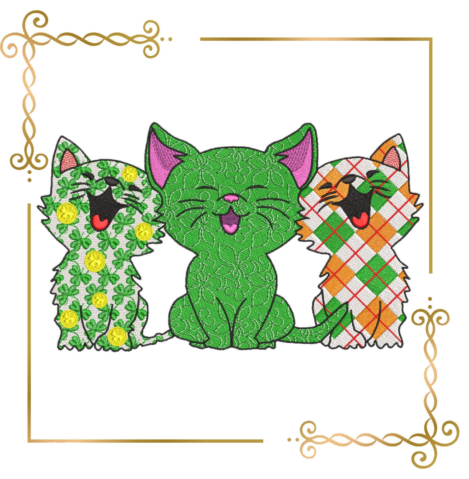 Super Fashion Kitties, cartoon character, sankt patrick's day, 2 Sizes embroidery design to the direct download.
