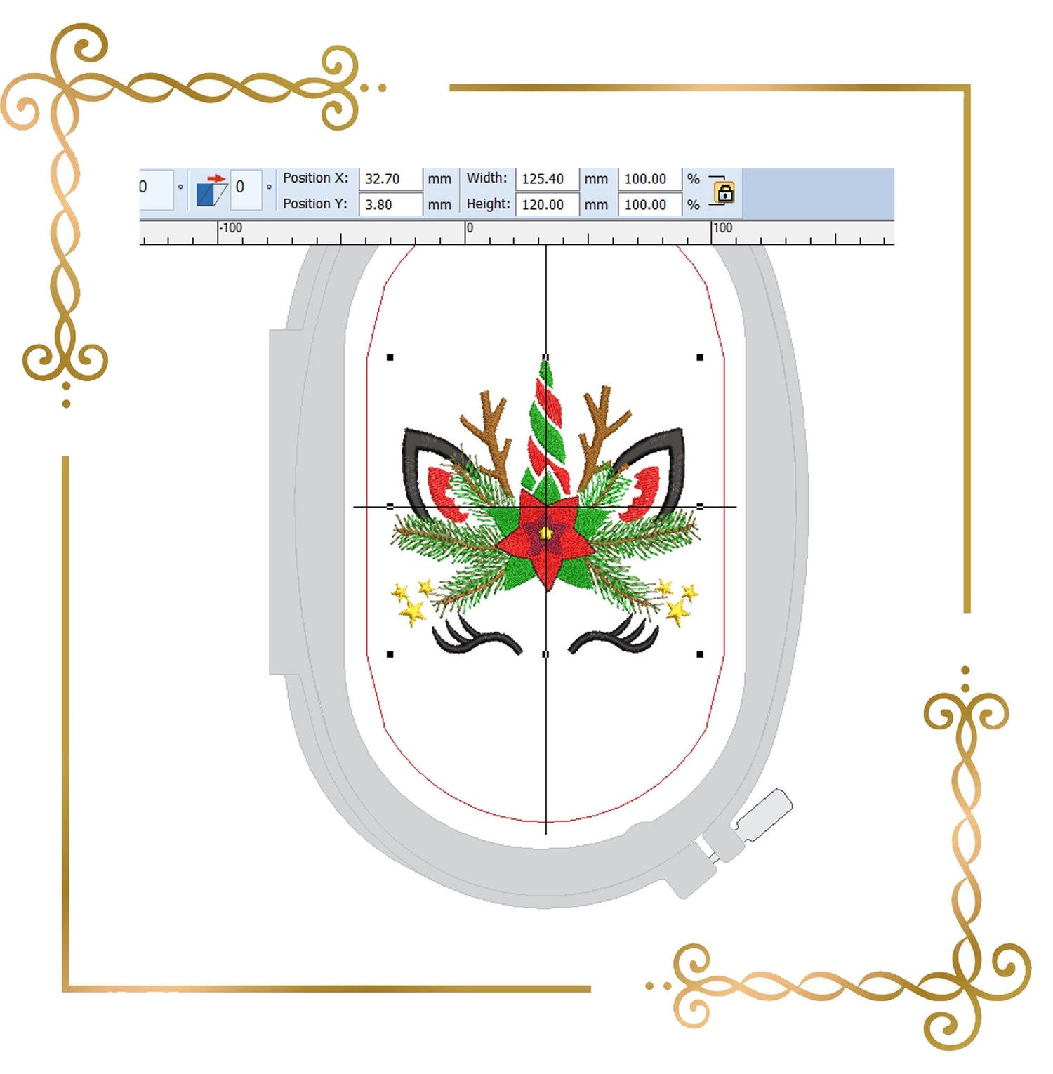 Unicorn Christmas 2 Sizes mistletoe and a Christmas tree branch embroidery design to the direct download
