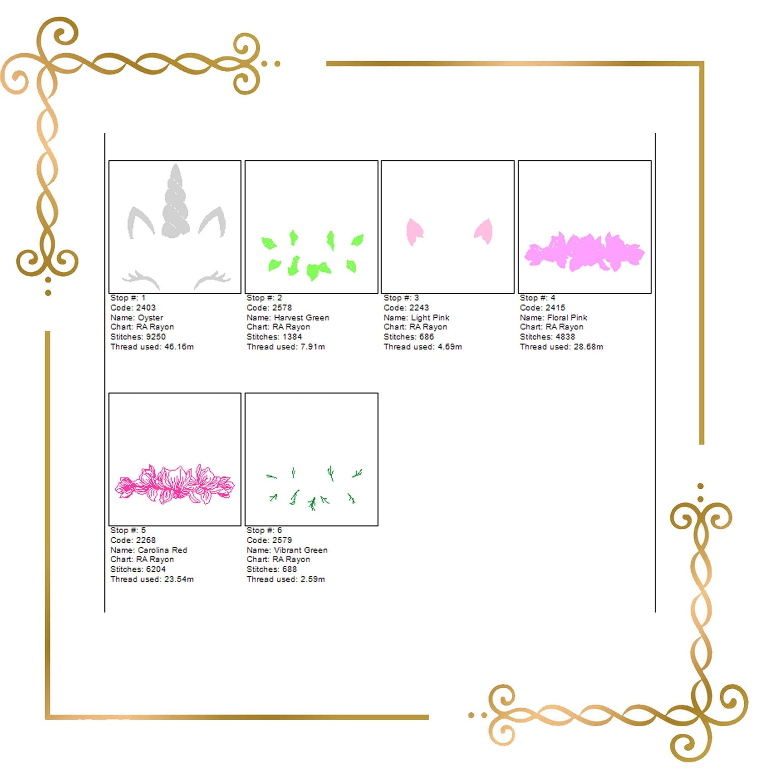 Unicorn head with flowers embroidery design 2 Sizes to the direct download